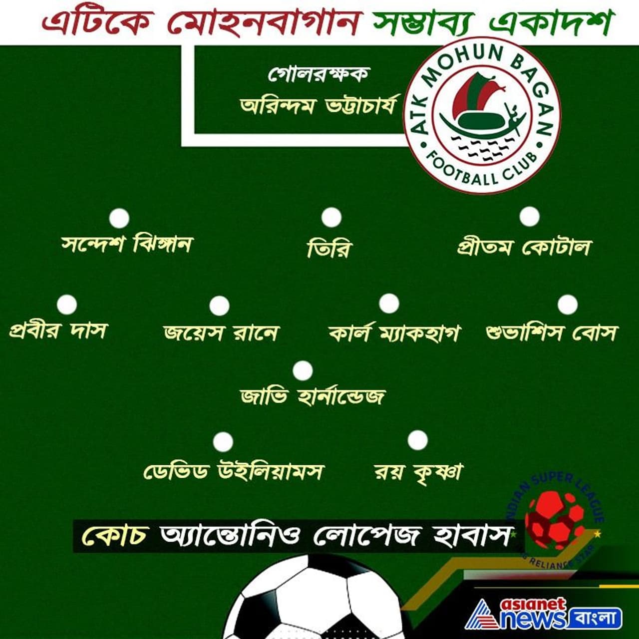 আজ আইএসএলে তৃতীয় ম্য়াচে মাঠে নামছে এটিকে মোহনবাগান। মরসুমের প্রথম দুটি ম্যাচ জিতে দুরন্ত শুরু করেছে অ্যান্টোনিও লোপেজ হাবাসের দল। শেষ ম্যাচে ডার্বি জয়ের পর আত্মবিশ্বাসও তুঙ্গে রয়েছে সবুজ-মেরুণ শিবিরের। আজ ওড়িশা এফসির বিরুদ্ধেও জয়ের ব্যাপারে আশাবাদী বাগান শিবির। ম্যাচে নামার আগে অনুশীলনে দলকে তৈরি করে নিয়েছেন হাবাস। দলের ছকে আজ পরিবর্তন করতে পারেন হাবাস। ৩-৪-১-২ ছকে আজ দল নামাতে পারেন বাগান কোচ। এক নজরে দেখে নেওয়া যাক ওড়িশার বিরুদ্ধে এটিকে মোহনবাগানের সম্ভাব্য একাদশ।