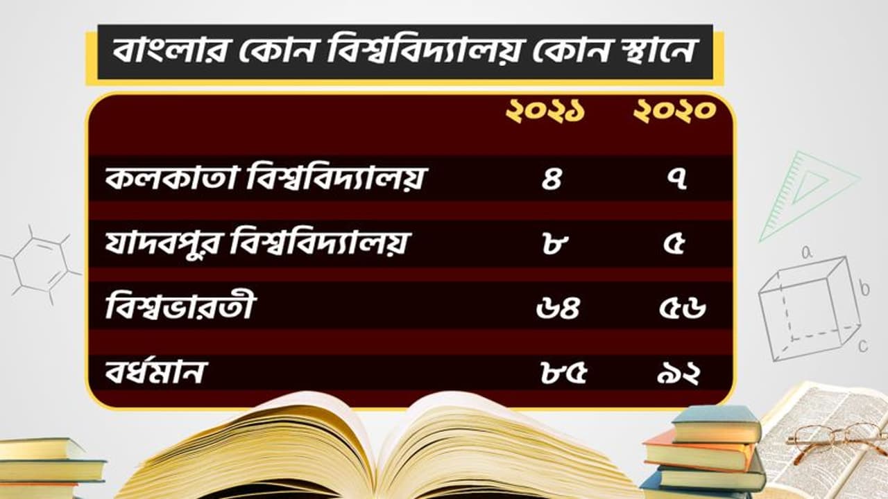 বৃহস্পতিবার 'ন্যাশনাল ইনস্টিটিউশনাল র্যাঙ্কিং ফ্রেমওয়ার্ক’ (এনআইআরএফ)-এর তালিকায় সেরা দশের তালিকায় জায়গা করে নিয়েছে বাংলার দুই বিশ্ববিদ্যালয় কলকাতা ও যাদবপুর। র্যাঙ্কিং অনুসারে এই বছর চতুর্থ স্থানে রয়েছে কলকাতা বিশ্ববিদ্যালয় এবং অষ্টম স্থানে রয়েছে যাদবপুর বিশ্ববিদ্যালয়। আগের বছরের তুলনায় র্যাঙ্কিং-এ পার্থক্য ঘটেছে দুই বিশ্ববিদ্যালয়েরই তবে প্রথম দশে নিজেদের স্থান অব্যাহত রেখেছে দুই বিশ্ববিদ্যালয়ই। এ ছাড়াও ভারতের সেরা শিক্ষা প্রতিষ্ঠানের তালিকায় সেন্ট জেভিয়ার্স কলেজ, খড়্গপুর আইআইটি, আইআইএম কলকাতা-সহ পশ্চিমবঙ্গের একাধিক শিক্ষা প্রতিষ্ঠানের নাম রয়েছে।