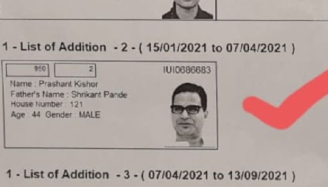 সদ্যো শেষ হওয়ার বঙ্গ বিধানসভা নির্বাচনের আগেই নাকি প্রশান্ত কিশোর ভবানীপুর কেন্দ্রের ভোটার তালিকায় নিজের নাম তুলেছিলেন। ঘটনাচক্রে শনিবার তা প্রকাশ্যে এসেছে।
