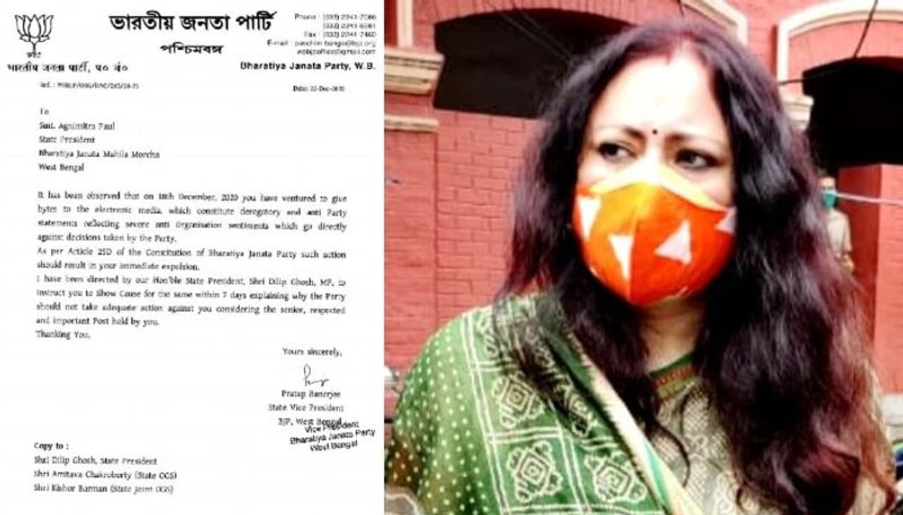 অগ্নিমিত্রা পলকে নোটিশ পাঠাল বিজেপি  দলবিরোধী মন্তব্যের অভিযোগ উঠেছে  ৭ দিনের  মধ্যে উত্তর দিতে বলা হয়েছে  উত্তর দিতে হবে দিলীপ ঘোষের কাছে