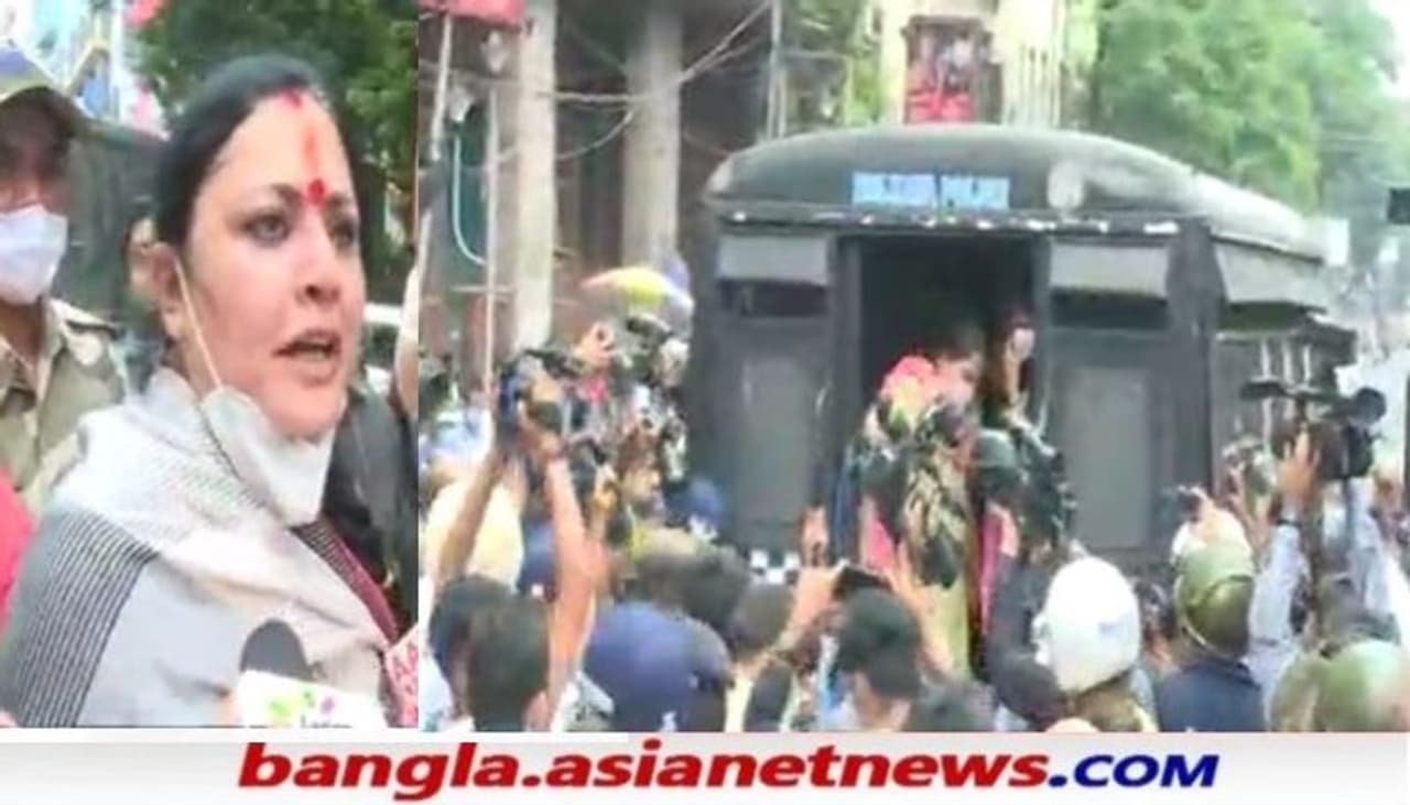 কলকাতায় ভবানী ভবনের সামনে বিক্ষোভে নেতৃত্ব দেন মহিলা মোর্চার সভানেত্রী অগ্নিমিত্রা পাল, এরপরেই গ্রেফতার হন অগ্নিমিত্রা। গ্রেফতারির পর টিফিনে চপ মুড়ি পেয়ে মমতাকে আক্রমণ অগ্নিমিত্রার।