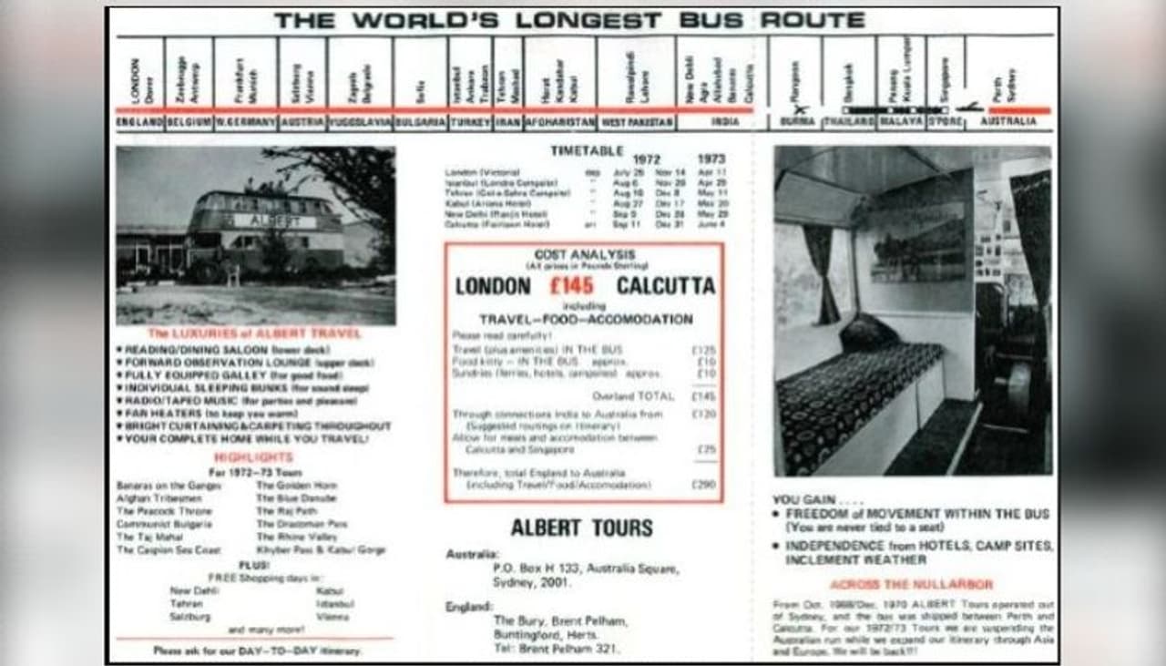 ৬০ দশকে ভারত-ইংল্যান্ডের মধ্যে চলত একটি বাস যাকে সবাই একডাকে 'অ্যালবার্ট' বলে চিনত ৮৫ পাউন্ডে পাওয়া যেত বিলাশবহুল যাত্রা খাওয়াদাওয়া, বিনোদন, আড্ডা সব ছিল সেখানে