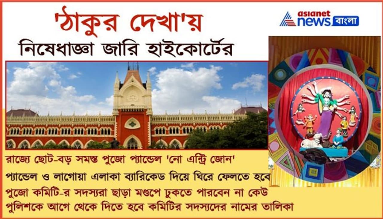 শুনানি শেষে কী রায় দিল আদালত? ডিভিশন বেঞ্চ সাফ জানিয়ে দিয়েছে, পুজোর কেনাকাটা করার জন্য দোকানে কিংবা শপিং মলে যেমন ভিড় হচ্ছে, পুজোর সময়ে তার পুনরাবৃত্তি হতে দেওয়া যাবে না। কিন্তু কীভাবে? হাইকোর্টের নির্দেশ, জনস্বার্থে ছোট-বড় কোনও প্য়ান্ডেলে বহিরাগত দর্শনার্থীরা ঢুকতে পারবেন না। এমনকী, প্যান্ডেল ও লাগোয়া এলাকা ব্যারিকেড দিয়ে ঘিরে নো এন্ট্রি বোর্ড ঝুলিয়ে দিতে হবে। সংশ্লিষ্ট পুজো কমিটির সদস্যরা কারা, তাঁদের নামের তালিকা তৈরি করে প্রশাসনকে দিতে হবে। সেই তালিকা যাঁদের নাম থাকবে, তাঁরা ছাড়া আর কেউ মণ্ডপে ঢুকতে পারবেন না। রাজ্যের যে ৩৪ হাজার পুজো কমিটি-কে অনুদান দিয়েছে সরকার, সেই কমিটিগুলিকে এই নিয়ম মেনে চলতে হবে বলে নির্দেশ দিয়েছে আদালত।