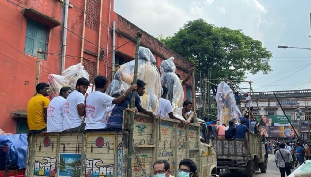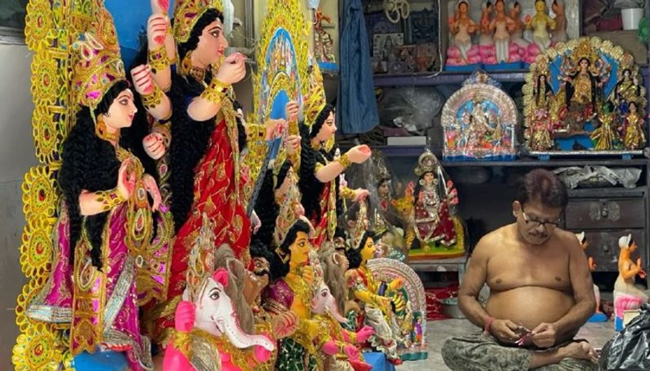 মহালয়ায় কুমোরটুলির শিল্পীরা ব্যস্ত তাঁদের শেষ মুহুর্তের তুলির টানে। একদিকে বৃষ্টি। আরেক দিকে করোনা। উভয় দিকেই ক্ষতি আখেরে শিল্পীদেরই। কিন্তু শিল্পী মানেই আশাবাদী। কুমোরটুলির শিল্পীরাও তার ব্যতিক্রম নন।