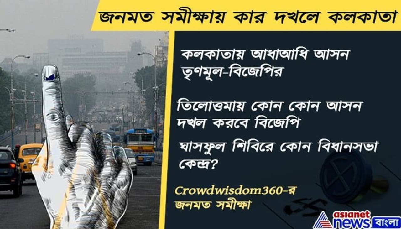 একুশে বাংলায় বিধানসভা নির্বাচনের আগেই Crowdwisdom360-র জনমত সমীক্ষা। জনমত সমীক্ষায় সামনে এলে কলকাতার ফলাফলের পূর্বাভাস। জেলা ভিত্তিক জনমত সমীক্ষার রিপোর্টে জানা গেল কলকাতা জেলার বিধানসভা আসন গুলির ফলের পূর্বাভাস। Crowdwisdom360-র সমীক্ষা রিপোর্টে দেখা যাচ্ছে তিলোত্তমার আটটি আসনের মধ্যে আধাআধি ভাগ নেবে বিজেপি-তৃণমূল। একনজরে দেখে নেওয়া যাক কলকাতার আসনগুলিতে কাকে এগিয়ে, কাকে পিছিয়ে রাখছে Crowdwisdom360-র জনমত সমীক্ষা।