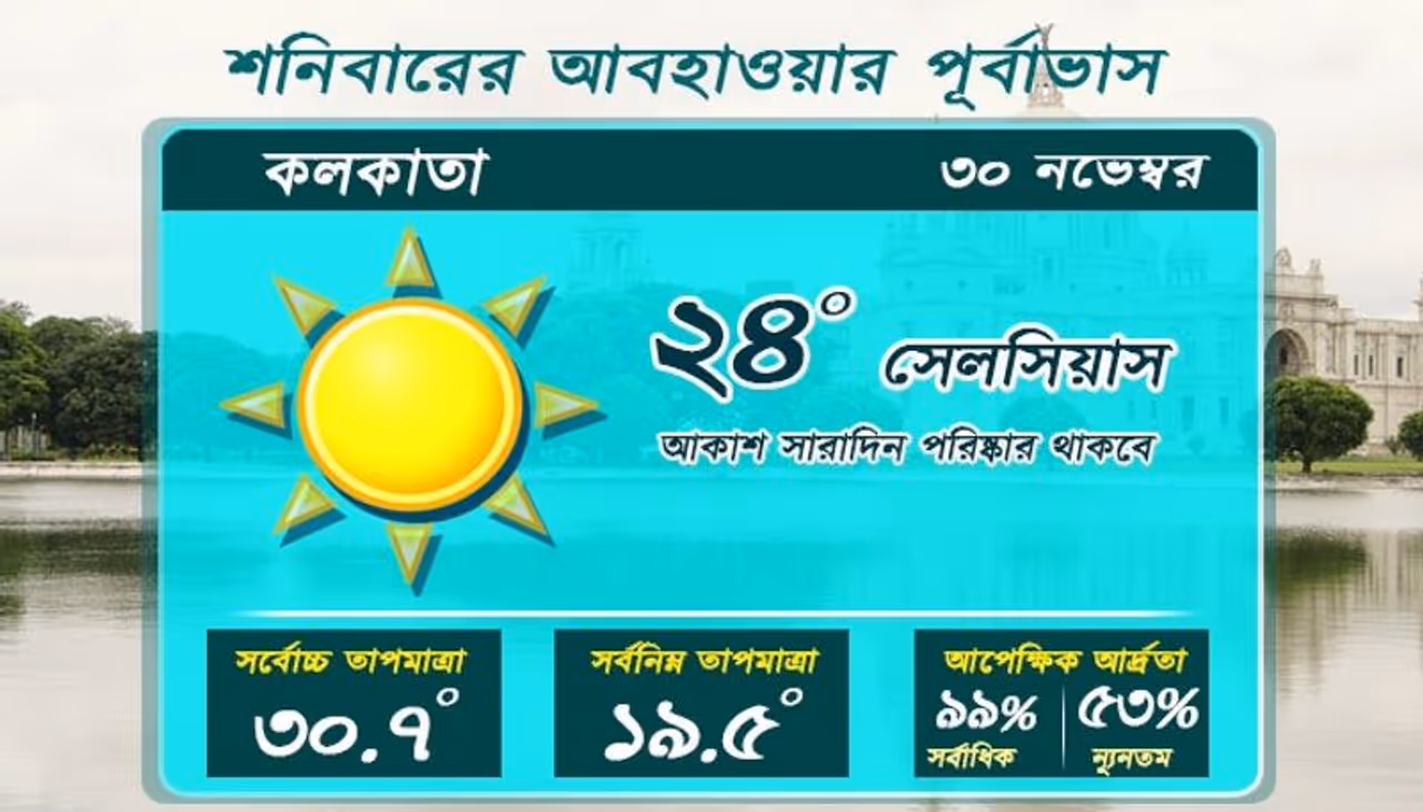 আবহাওয়াবিদদের অনুমান, আগামী তিন-চারদিনেও তাপমাত্রার তেমন কোনও পরিবর্তন হবে না। তবে ডিসেম্বরের ৩ অথবা ৪ তারিখ থেকে রাতের তাপমাত্রা কমার একটা সম্ভাবনা রয়েছে।