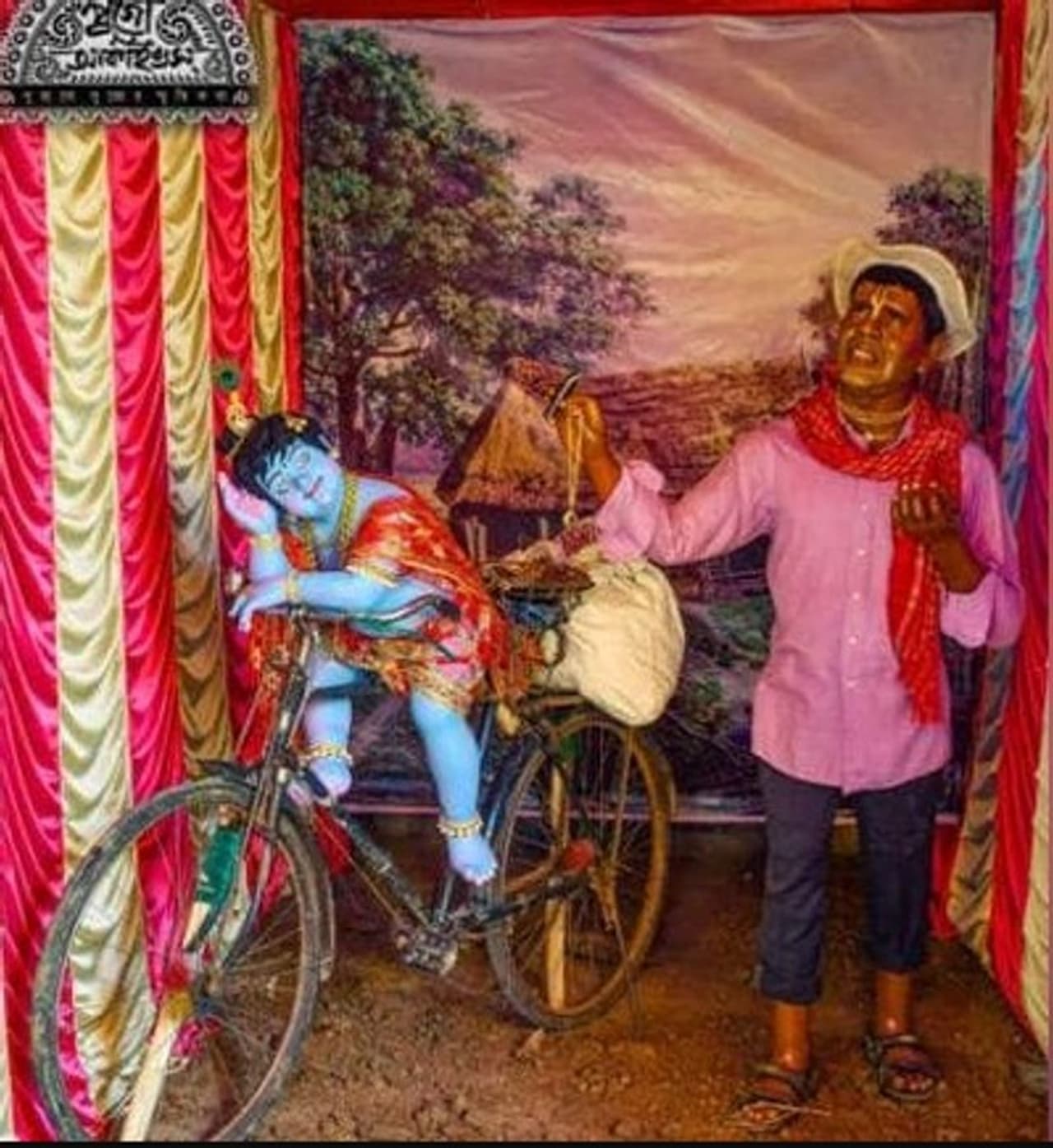 মূর্তিটিতে ভুবন বাদ্যকারের (Bhuban Badyakar) পরনে রয়েছে কালো প্যান্ট, গোলাপি জামা এবং গলায় লাল গামছা, কপালে তিলক ও পেয়ে চটি। গান গাওয়ার ভঙ্গিমায় দাঁড়িয়ে আছেন তিনি এবং তাঁর পাশেই একটি গোপাল ঠাকুরের মূর্তি যা দেখে এ কথা মনে হওয়া স্বাভাবিক যে যেন গোপালের উদ্দেশ্যেই গান ধরেছেন বাদাম কাকু। গোপাল পূজা ছাড়া বাংলায় দোলযাত্রা অসম্পূর্ণই বলা চলে। কুমোরটুলির শিল্পীরা ও বালক ভোজন, সাংস্কৃতিক অনুষ্ঠানের সঙ্গে এই উৎসব পালন করেছেন।