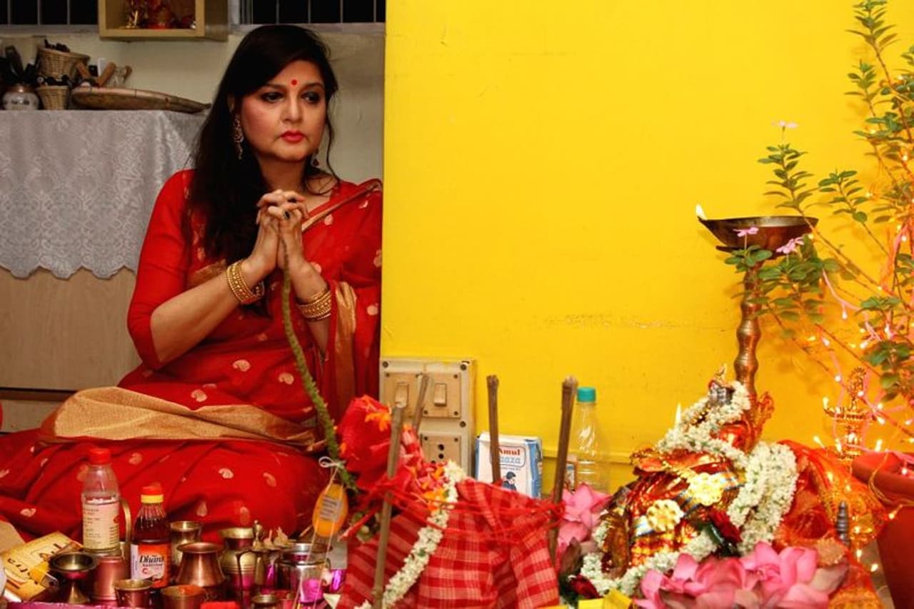 পুজোর আগের রাতে বাড়ি সাজানো দিয়ে কাজ শুরু। পুজোর দিন নিজের হাতে বোগ রান্না করি। খিচুড়ি, আলুর দম, ফুলকপির তরকারি, পনির, পাঁচ রকম ভাজা, লুচি, বড়ি ভাজা, চাটনি, পায়েস। এ সব করতে করতে সন্ধে নামে। বাড়িতে লোকের আনাগোনা শুরু। সবাই আমায় ঠেলে পাঠান পরিচ্ছন্ন হওয়ার জন্য। পুজো, বাঙালির উৎসব মানেই আমার সাজ শাড়ি। সঙ্গে মানানসই ব্লাউজ, হাল্কা সাজ আর সোনার গয়না। হ্যাঁ, লক্ষ্মীপুজোয় নিজেকে সোনার গয়নায় সাজাতে ভালবাসি। আমাদের বাড়িতে দেবীর পাশাপাশি নারায়ণ পুজোও হয়। তাই চেষ্টা করি সবাই আসার আগে নিরিবিলিতে পুজো সেরে ফেলতে। যজ্ঞ, পুষ্পাঞ্জলির সময় বেশি ভিড় থাকলে পুজোয় যেন মন বসে না!