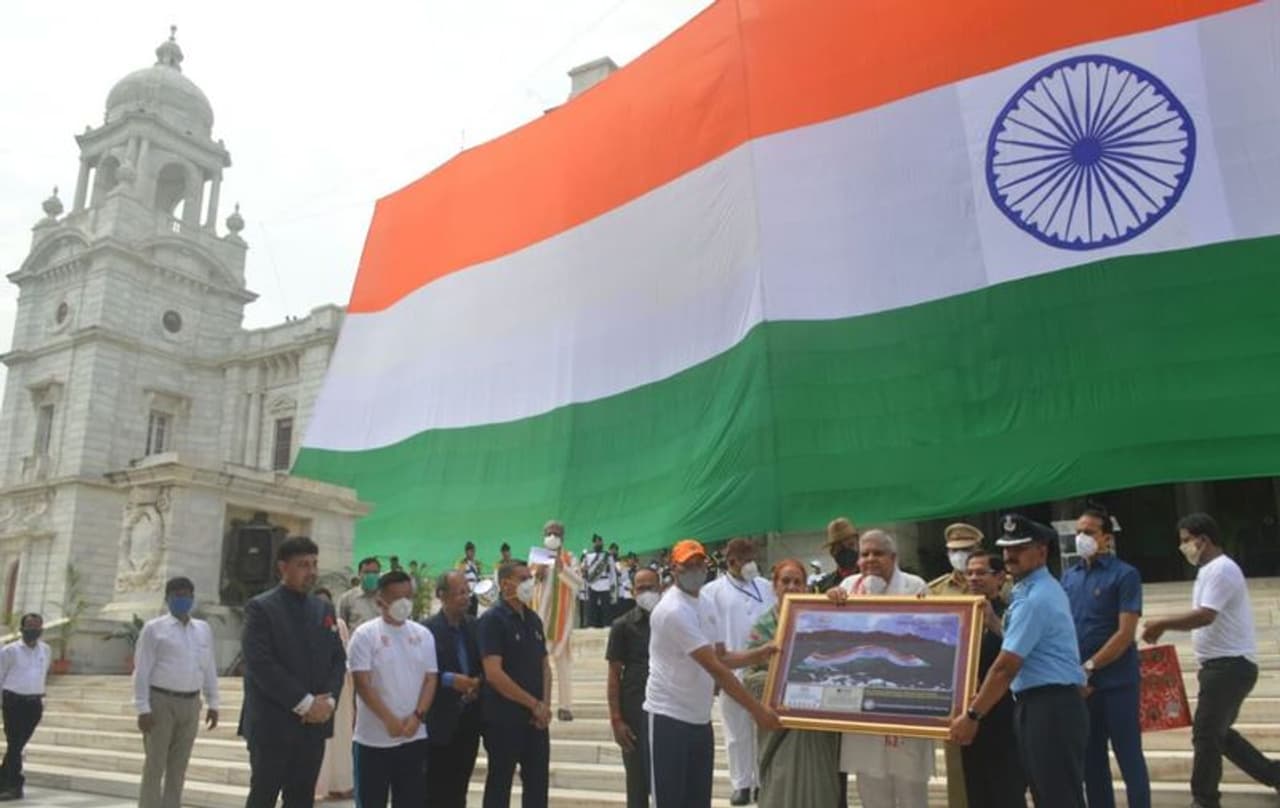 স্বাধীনতার ৭৫ বছরে এবার ভিক্টোরিয়ার পরীর চুল ছুঁয়ে উড়ল ৭৫০০ বর্গ ফুটের তেরঙ্গা। ৭৫তম স্বাধীনতা দিবসকে স্মরণীয় করে রাখার জন্য এই পতাকাটি দান করছেন রাজ্যপাল জগদীপ ধনখড়।