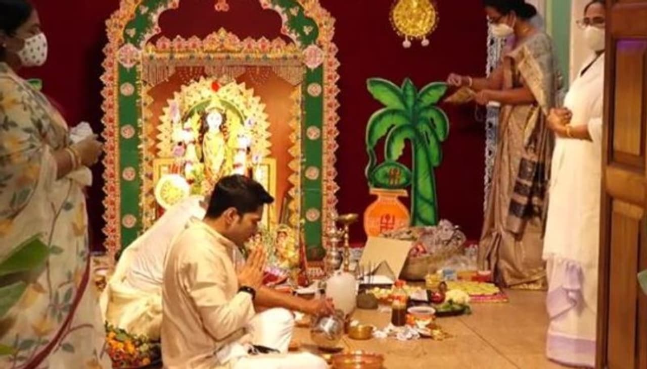 কোভিড বিধি মেনেই নিজের বাড়িতে পুজো সারলেন মমতা সন্ধ্যায় পুজোতে অঞ্জলী দেন সাংসদ অভিষেক বন্দ্যোপাধ্যায় অন্য বছর বৃদ্ধাশ্রমবাসীরাও হাজির হন মমতার কালীপুজোতে তবে করোনার কারণে এই বছর বিশেষ সতর্কতা নেওয়া হয়েছে