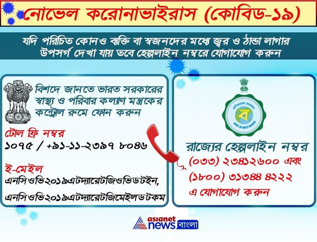 রাজ্যের হেল্পলাইন নম্বর (০৩৩) ২৩৪১২৬০০ এবং (১৮০০) ৩১৩৪৪ ৪২২২ এ যোগাযোগ করুন।