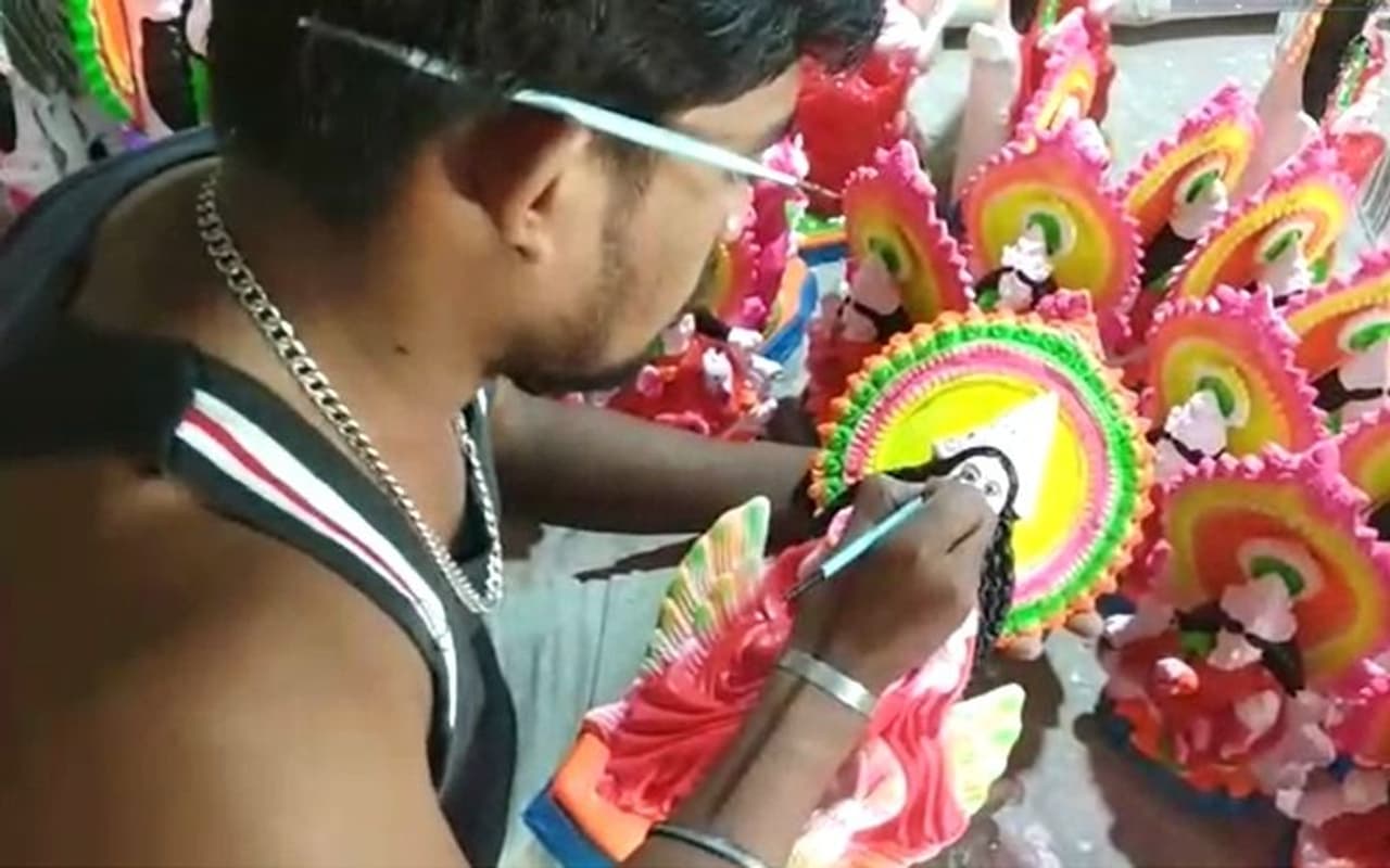 বিধি নিষেধ পার করে শেষ হয়েছে বাঙালির শ্রেষ্ঠ উৎসব এবার ঘরে ঘরে ধনদেবীর আরাধনার সময় মূলত পট ও ছাঁচের ঠাকুরের চাহিদা বেশী থাকে তুলির টানে রূপ পাচ্ছে লক্ষী