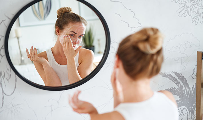 মসুর ডালের গুঁড়ো, বেসন, হলুদ এবং দই ভালোভাবে মিশিয়ে পেস্ট তৈরি করুন। তারপর এটি মুখ এবং গলায় ভালোভাবে লাগান। ২০-২৫ মিনিট পরে ধুয়ে ফেলুন। এই প্যাক ত্বকের মৃত কোষ তুলে ফেলে এবং ব্রণ তথা ঝাঁই কমায়।