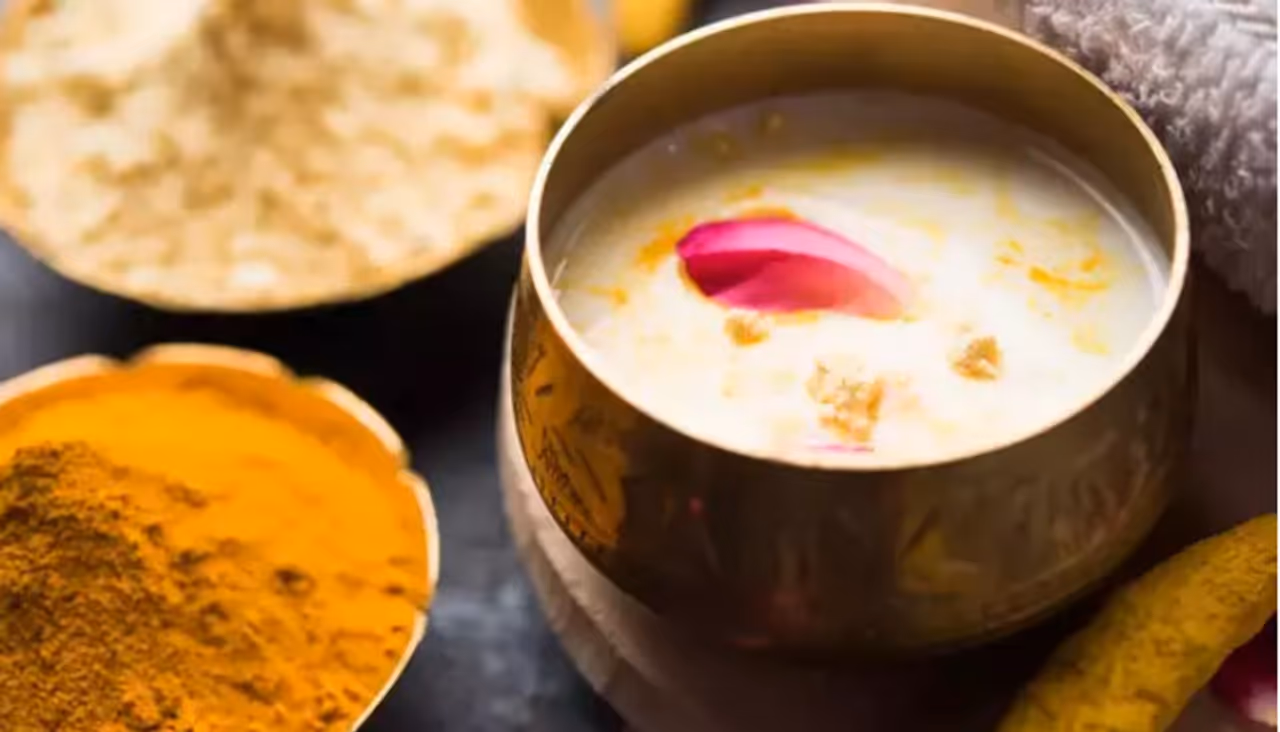 বেসন ও হলুদ দিয়ে প্যাক বানাতে পারেন। প্রথমে হলুদ বেটে নিন। তার সঙ্গে মেশান বেসন। এবার পরিমাণ মতো দুধ দিয়ে প্যাক বানান। ত্বকে লাগান। শুকিয়ে গেলে ঘষে ধুয়ে নিন।