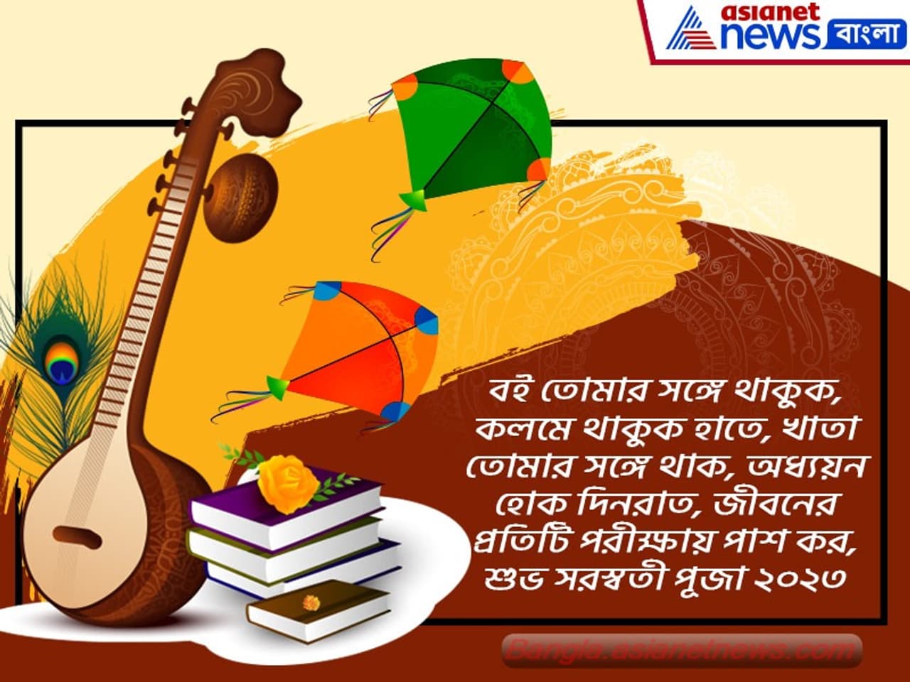বই তোমার সঙ্গে থাকুক, কলমে থাকুক হাতে, খাতা তোমার সঙ্গে থাক, অধ্যয়ন হোক দিনরাত, জীবনের প্রতিটি পরীক্ষায় পাশ কর, শুভ সরস্বতী পূজা ২০২৩