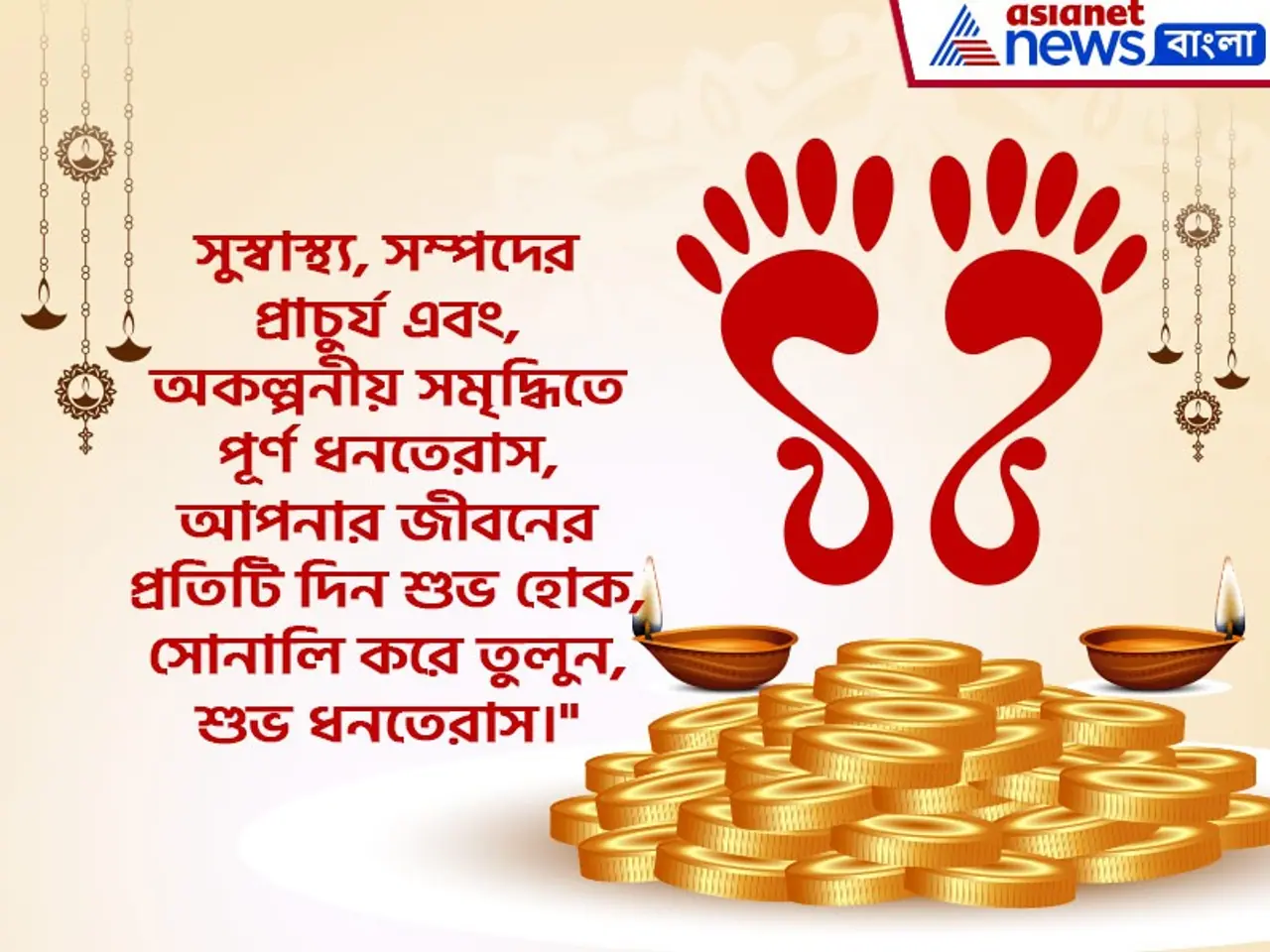 ধনতেরাস উপলক্ষে প্রিয়জনদের জন্য শুভকামনা, সম্পদ, সুখ, স্বাস্থ্য এবং সাফল্য কামনা করা হয়েছে। পরিবারের সাথে আনন্দ উদযাপন এবং প্রতিটি মুহূর্ত উপভোগ করার আহ্বান।