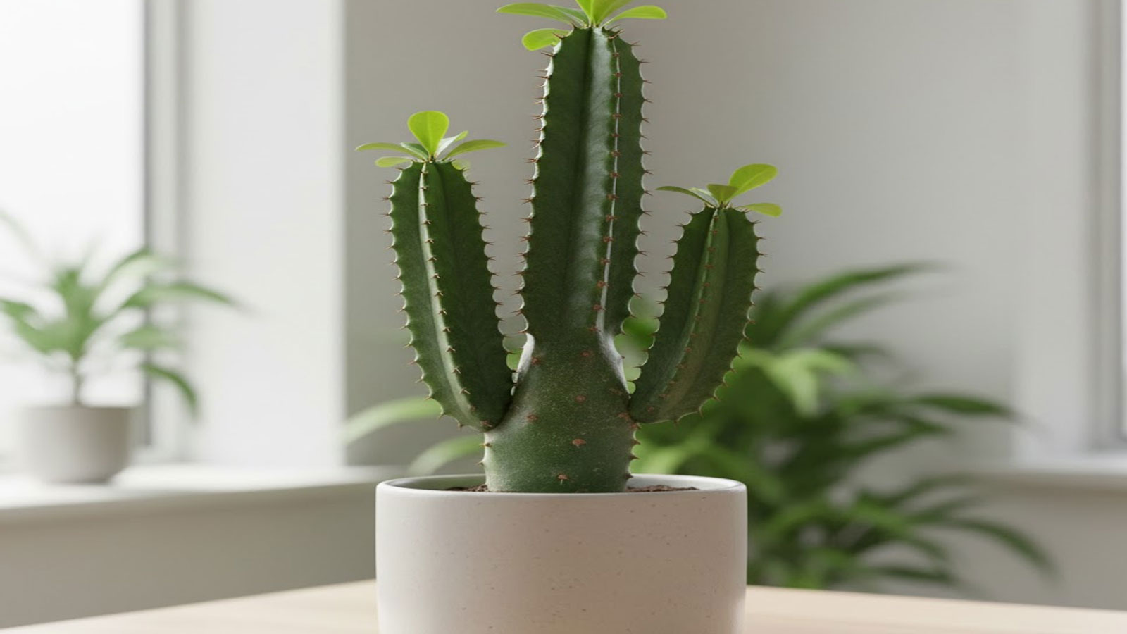 ক্যাকটাসের মতো দেখতে এই গাছটিও শুষ্ক এবং নুড়িযুক্ত মাটিতে জন্মায়। এর খুব কম যত্নের প্রয়োজন হয়। ইউফোর্বিয়া একটি অত্যন্ত কষ্টসহিষ্ণু গাছ, যা কম জল এবং তীব্র রোদেও সহজে বেড়ে ওঠে। এর দুধের মতো রসযুক্ত কাণ্ড এটিকে পোকামাকড় এবং রোগ থেকে রক্ষা করে। এটি বাতাস পরিশুদ্ধকারী, কম রক্ষণাবেক্ষণের এবং দীর্ঘস্থায়ী ইনডোর প্ল্যান্ট হিসেবে জনপ্রিয়।