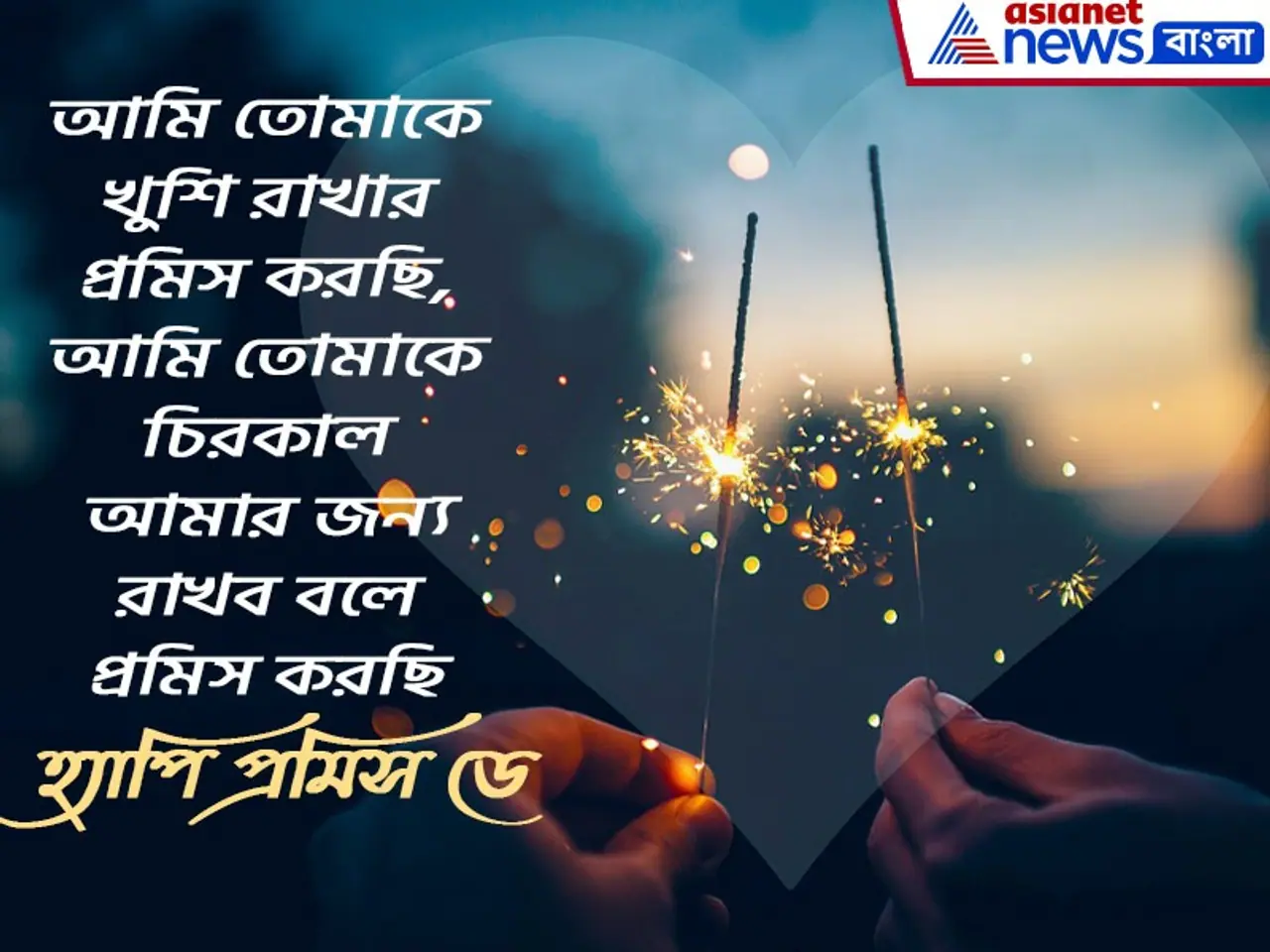 আমি ভাল এবং খারাপ সময়ে তোমার সঙ্গে থাকার প্রমিস করছি- আমি জীবনের সব উত্থান-পতনে তোমার সঙ্গে থাকার প্রমিস করছি। Happy Promise Day প্রিয়তম!