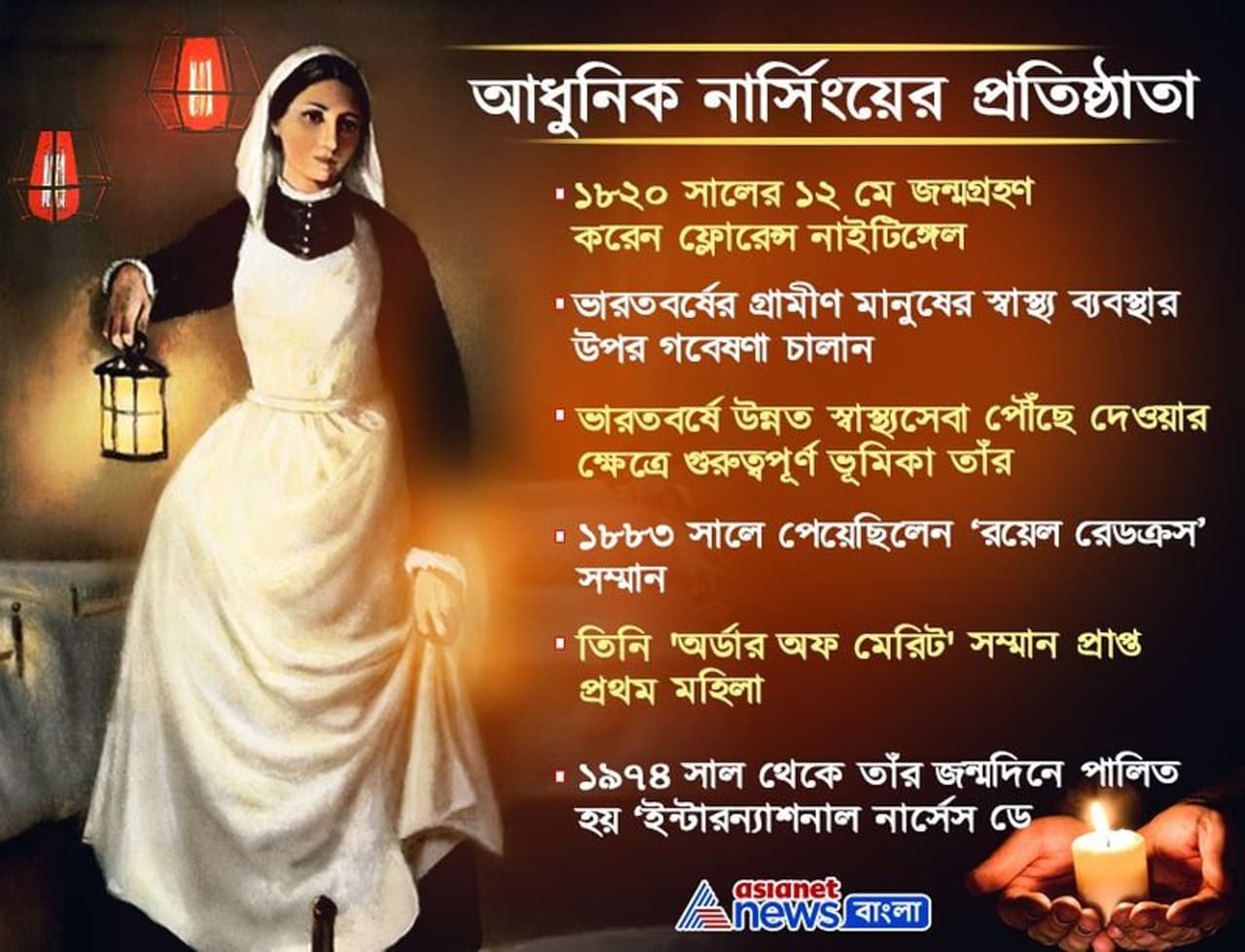 আধুনিক নার্সিংয়ের প্রতিষ্ঠাতা ফ্লোরেন্স নাইটিঙ্গেল, ইতালিতে জন্মগ্রহণ করেছিলেন তিনি। বাবা উইলিয়াম এডওয়ার্ড নাইটিঙ্গেল এবং মা ফ্রান্সিস নাইটিঙ্গেলের অভিজাত পরিবারে ১৮২০ সালের ১২ মে জন্মগ্রহণ করেন ফ্লোরেন্স। ১৮৫৫ সালে তিনি নার্স প্রশিক্ষণের জন্য তহবিল সংগ্রহের কাজ শুরু করেন। নিরলস প্রচেষ্টায় ১৮৫৯ সালে তিনি নাইটিঙ্গেল ফান্ডের জন্য সংগ্রহ করেন প্রায় ৪৫ হাজার পাউন্ড। পরবর্তী সময়ে তিনি ভারতবর্ষের গ্রামীণ মানুষের স্বাস্থ্য ব্যবস্থার উপর গবেষণা চালান। যা ভারতবর্ষে উন্নত স্বাস্থ্যসেবা পৌঁছে দেওয়ার ক্ষেত্রে গুরুত্বপূর্ণ অবদান রাখে।