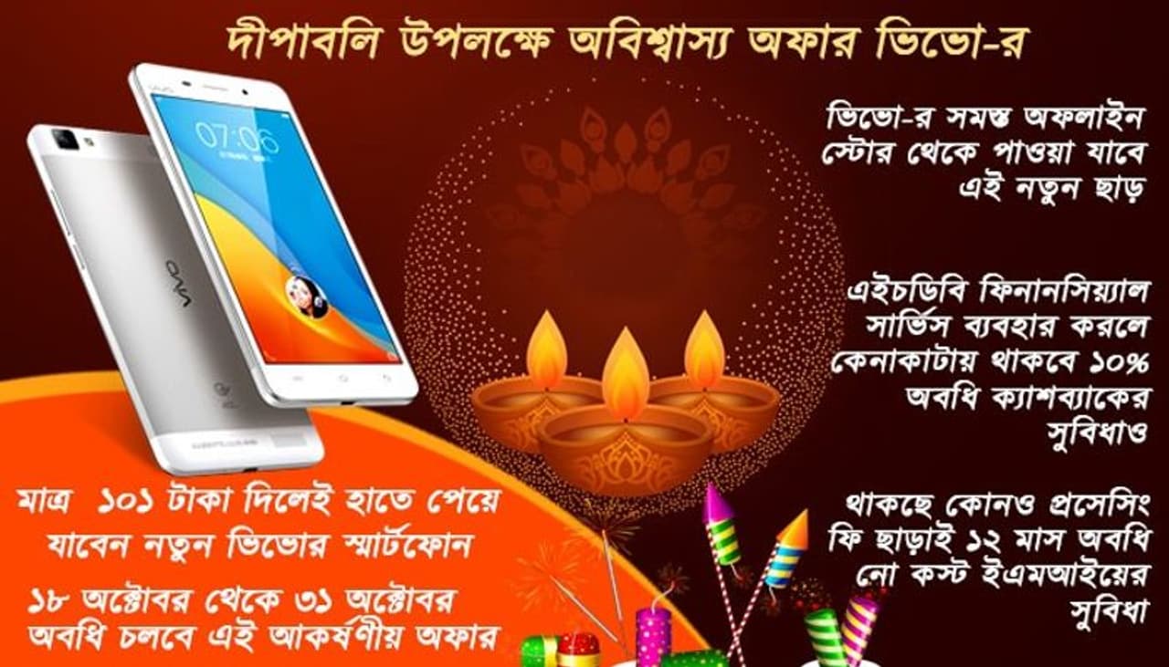 এই স্মার্টফোন সংস্থা দীপাবলি উপলক্ষে নিয়ে এসেছে এই অবিশ্বাস্য অফার মাত্র ১০১ টাকা দিলেই হাতে পেয়ে যাবেন নতুন ভিভোর স্মার্টফোন ১৮ অক্টোবর থেকে ৩১ অক্টোবর অবধি চলবে এই আকর্ষণীয় অফার সংস্থার সমস্ত অফলাইন স্টোর থেকে পাওয়া যাবে এই নতুন ছাড়