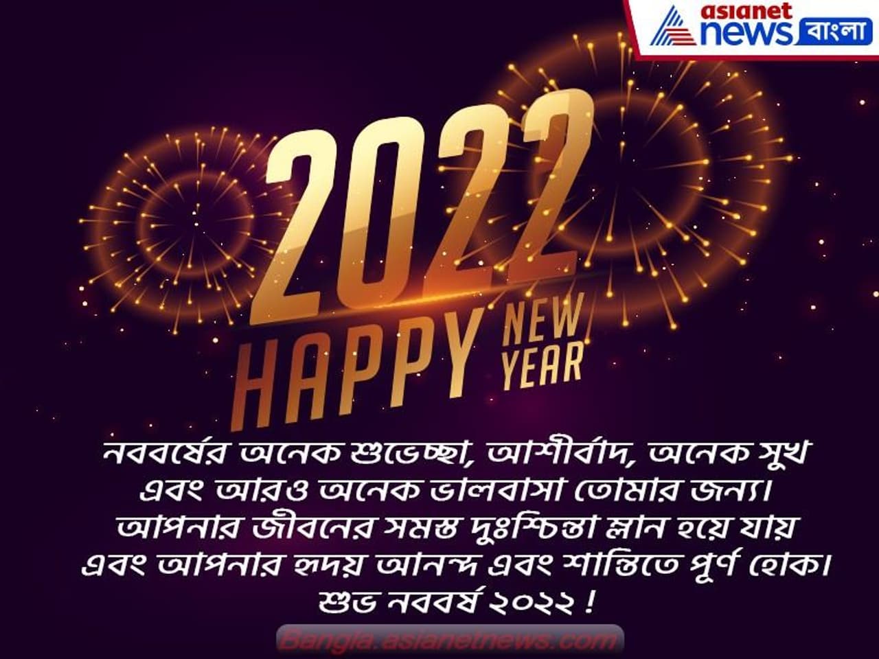 ৭) নববর্ষের অনেক শুভেচ্ছা, আশীর্বাদ, অনেক সুখ এবং আরও অনেক ভালবাসা তোমার জন্য। আপনার জীবনের সমস্ত দুঃশ্চিন্তা ম্লান হয়ে যায় এবং আপনার হৃদয় আনন্দ এবং শান্তিতে পূর্ণ হোক। শুভ নববর্ষ ২০২২ !