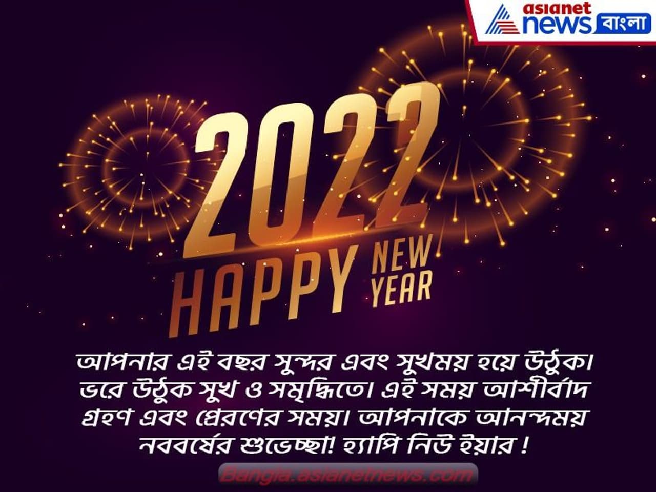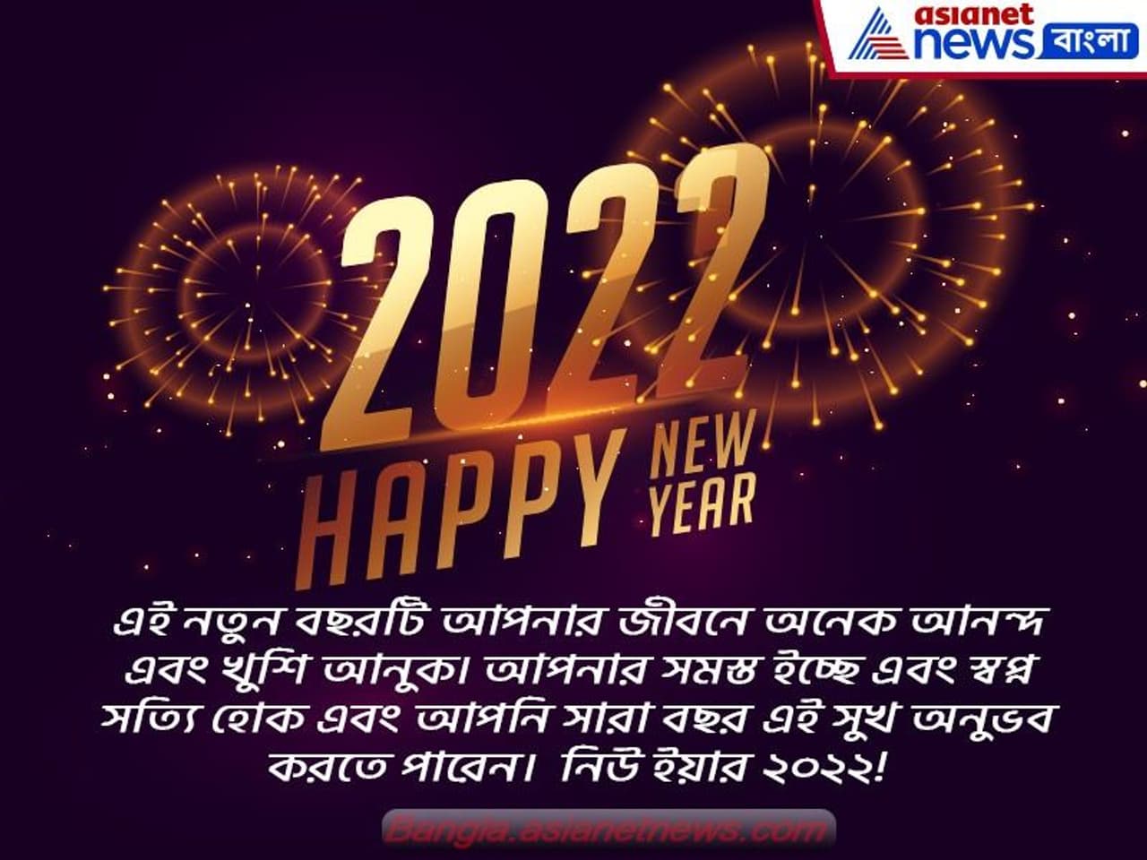 ৩) এই নতুন বছরটি আপনার জীবনে অনেক আনন্দ এবং খুশি আনুক। আপনার সমস্ত ইচ্ছে এবং স্বপ্ন সত্যি হোক এবং আপনি সারা বছর এই সুখ অনুভব করতে পারেন। নিউ ইয়ার ২০২২!