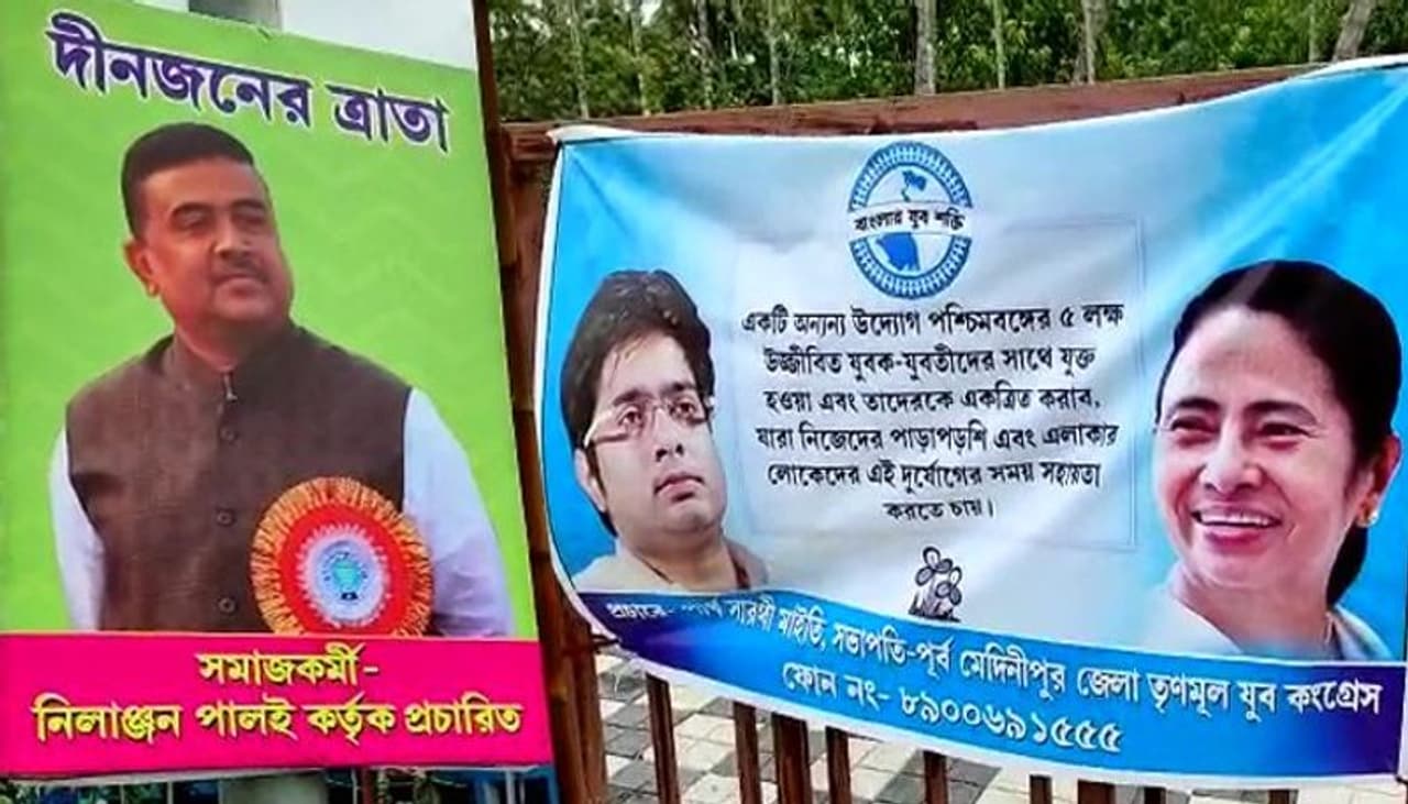 শুভেন্দু হোর্ডিংয়ে 'পতাকা বাঁধা কমিটি' শালবনীতে এই পোস্টার ঘিরে জল্পনা লালগড়ে অনুগামী সঙ্কটে তৃণমূল মেদিনীপুর জেলা তৃণমূলে শোরগোল