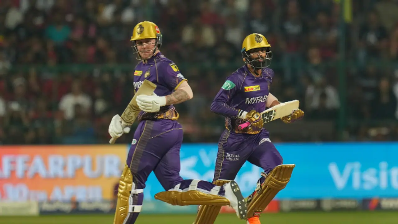 এদিন টসে জিতে প্রথমে ফিল্ডিং করার সিদ্ধান্ত নেন আরসিবি-র অধিনায়ক বিরাট কোহলি। কেকেআর-এর ইনিংসের শুরুটা দারুণভাবে করেন দুই ওপেনার রয় ও জগদীশন। দলের ৮৩ রানের মাথায় আউট হয়ে যান জগদীশন। কিছুক্ষণ পরেই আউট হয়ে যান রয়। এরপর নীতীশ ও ভেঙ্কটেশের জুটিতে যোগ হয় ৮০ রান। ১৮-তম ওভারে ১ বলের ব্যবধানে এই দুই ব্যাটারকে ফিরিয়ে দেন হাসারঙ্গা। পরের ওভারে আউট হয়ে যান রাসেল। এরপর কেকেআর-কে ২০০ রানে পৌঁছে দেন রিঙ্কু ও ওয়াইজি।