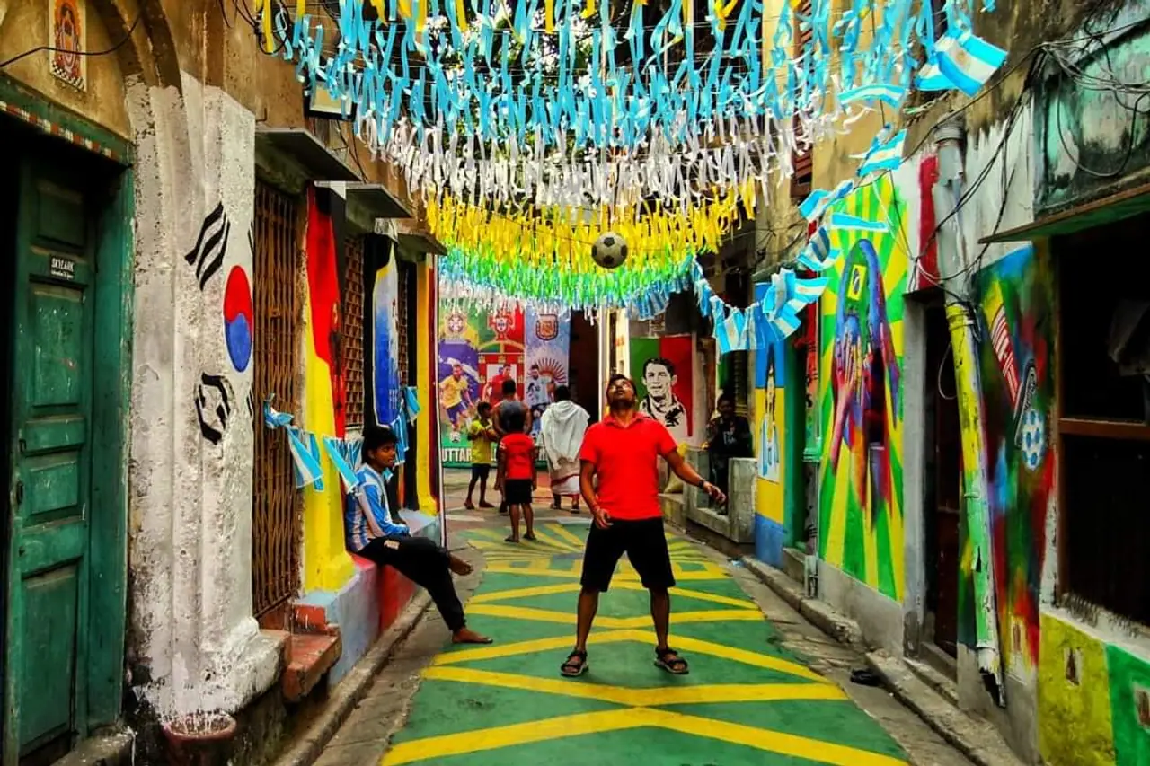 কলকাতার আকাশে বাতাসে এখন ফুটবল। উত্তর কলকাতার একটা গোটা গলি সেজে উঠল ফুটবলের জন্য। দেওয়াল থেকে রাস্তা সর্বত্রই ফুটবল। ছোট থেকে বড় সকলেই মেতেছে ফিফা জ্বরে।