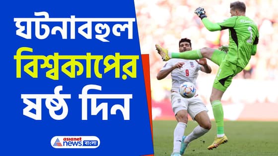 কাতার বিশ্বকাপের ষষ্ঠ দিন ঘটনাবহুল হয়ে থাকল। পরপর ২ ম্যাচ হেরে গ্রুপের শেষ ম্যাচের আগেই বিশ্বকাপ থেকে বিদায় নিল কাতার। ওয়েলশকে ২-০ গোলে হারিয়ে নক-আউটে যাওয়ার আশা বাঁচিয়ে রাখল ইরান। নেদারল্যান্ডসের সঙ্গে অসাধারণ লড়াই করে ১ পয়েন্ট ছিনিয়ে নিল ইকুয়েডর। ইংল্যান্ডকে আটকে দিল আমেরিকা। শুক্রবার প্রথম ম্যাচে ইরান-ওয়েলশ ম্যাচ শেষ হল নাটকীয়ভাবে। প্রথমার্ধে গোল হয়নি, দ্বিতীয়ার্ধেও গোল হচ্ছিল না। ম্যাচ যখন ড্রয়ের দিকে এগোচ্ছে, তখনই লাল কার্ড দেখেন ওয়েলশের গোলকিপার ওয়েন হেনেসি। ইরানের স্ট্রাইকার মেহদি তারেমিকে বক্সের বাইরে ধাক্কা মেরে ফেলে দিয়ে মার্চিং অর্ডার পান ওয়েলশের গোলকিপার। এরপর ইনজুরি টাইমের ৮ ও ১১ মিনিটে পরপর ২ গোল করে ম্যাচ জিতে নেয় ইরান। বিশ্বকাপে এই প্রথম ইউরোপের কোনও দেশের বিরুদ্ধে জয় পেল ইরান।