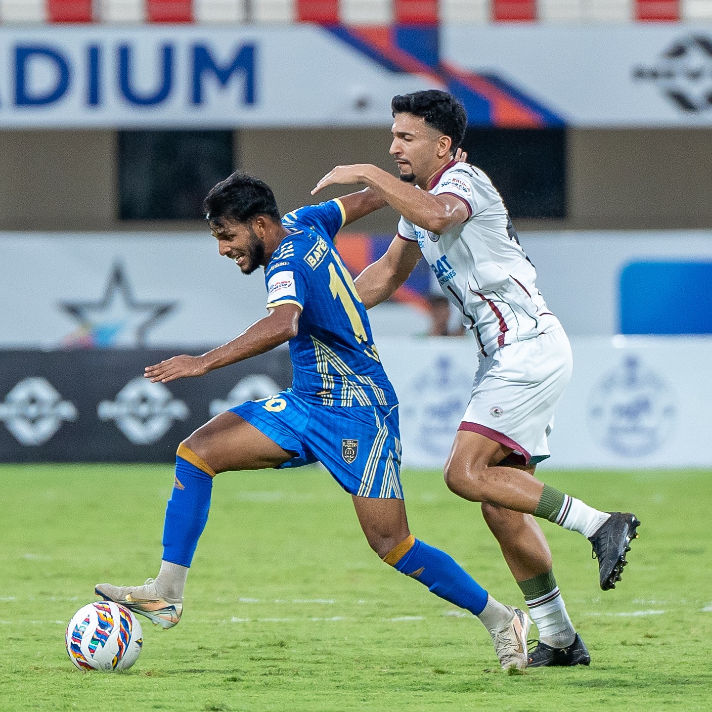শনিবার, ভুবনেশ্বরের কলিঙ্গ স্টেডিয়ামে মুখোমুখি হয়েছিল মোহনবাগান বনাম কেরালা ব্লাস্টার্স (Mohun Bagan vs Kerala Blasters)। এদিন ম্যাচের শুরু থেকেই দাপট দেখাতে শুরু করে বাস্তব রায়ের ছেলেরা। আর দলের অধিনায়ক ছিলেন দীপক টাংরি। তবে কেরালাও পাল্টা আক্রমণে ওঠার চেষ্টা চালাতে থাকে। কিন্তু প্রথম ডেডলক ভাঙে মোহনবাগানই। ম্যাচের ২২ মিনিটে, মাঝমাঠ থেকে আসা বল রিসিভ করে দুরন্ত কন্ট্রোল করেন সালাউদ্দিন। তারপর কাট করে বক্সের ভিতর ঢুকে, ডিফেন্ডারদের কাটিয়ে সোজা পাস বাড়ান সাহাল আবদুল সামাদের (Sahal Abdul Samad) দিকে। আর সেই ঠিকানা লেখা পাস ধরেই অনবদ্য গোল করে যান সাহাল আবদুল সামাদ এবং মোহনবাগান এগিয়ে যায় ১-০ ব্যবধানে (Mohun Bagan vs Kerala Blasters Highlights)।