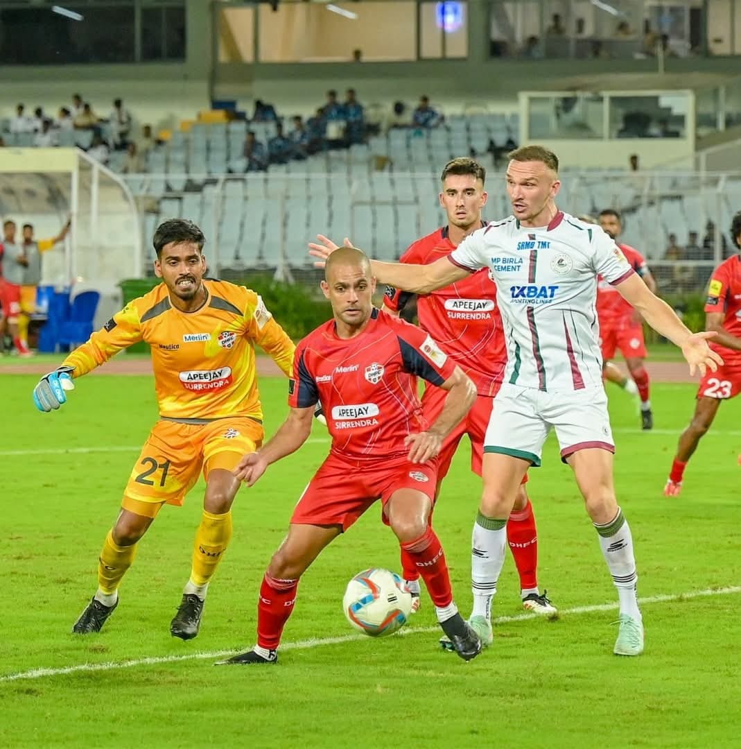 তবে সেই সুখ বেশিক্ষণ স্থায়ী হয়নি সবুজ মেরুনের। ম্যাচের ২৪ মিনিটে, লুকা মাজসেনের গোলে সমতা ফেরায় ডিএইচএফসি। খেলার ফলাফল তখন ১-১।