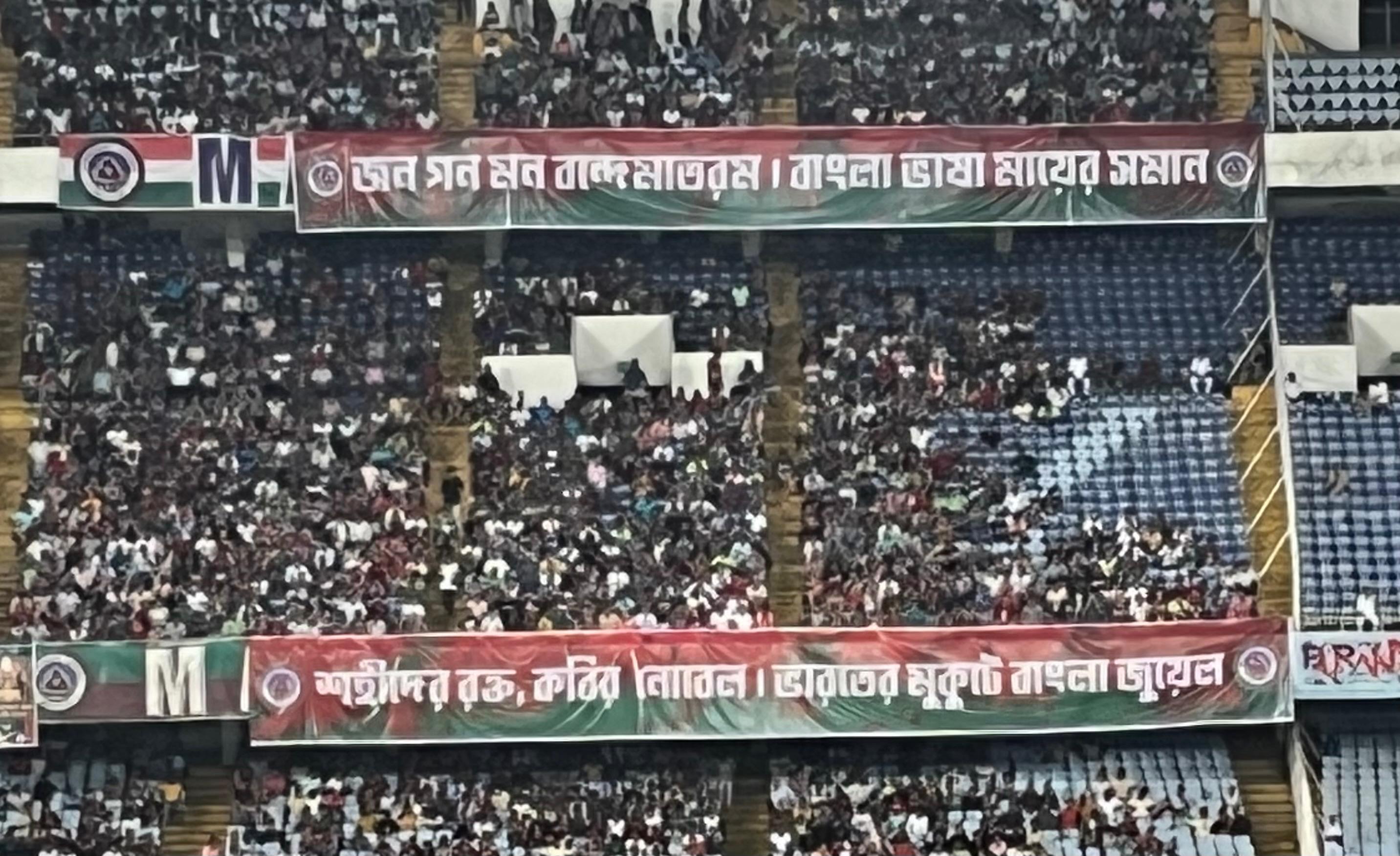 এছাড়াও অন্য টিফো বলে গেল, “জন গণ মন বন্দেমাতরম। বাংলা ভাষা মায়ের সমান।" আরেকটিতে লেখা ছিল “শহীদের রক্ত, কবির নোবেল। ভারতের মুকুটে বাংলার জুয়েল।"