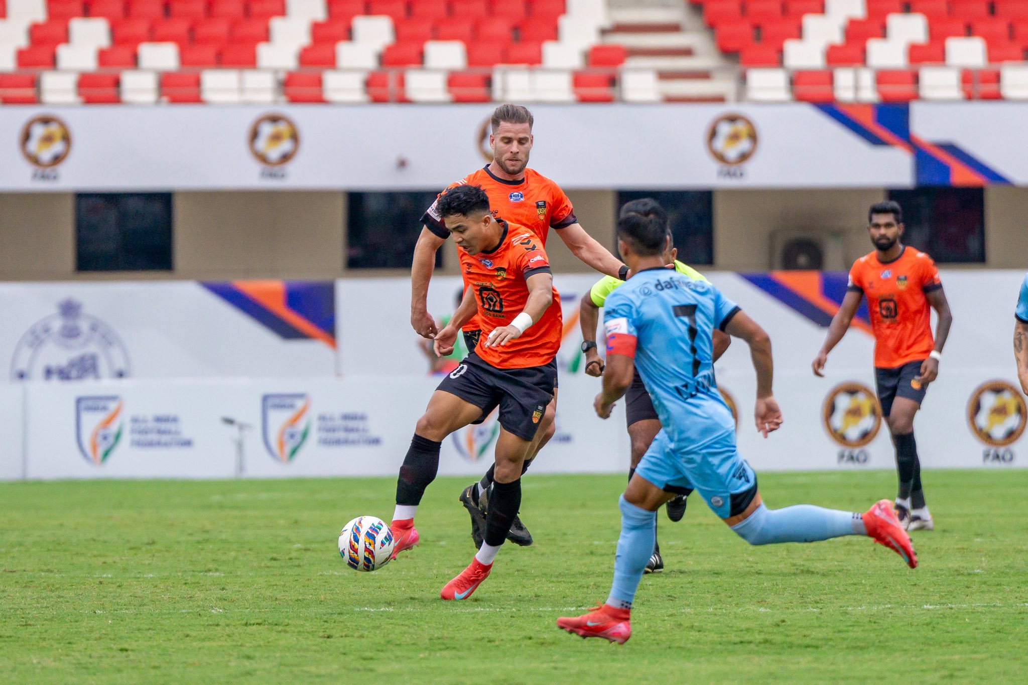 সবথেকে বড় বিষয়, অরিত্র, সার্থক এবং ডেভিডরা ইন্টার কাশীর রক্ষণভাগকে বেশ বুদ্ধি করেই সামলাচ্ছিলেন। কারণ, দুই উইং ব্যবহার করে আক্রমণে ওঠার চেষ্টা করছিল মুম্বই। বিশেষ করে মুম্বই সিটি এফসি ফরোয়ার্ড নৌফল এবং নিকোলাসের কথা বলতেই হয়। বারংবার তারা চাপ বাড়াতে থাকেন কাশীর ডি-বক্সে। কিন্তু গোল আসছিল না কিছুতেই (Inter Kashi vs Mumbai City FC Highlights)।