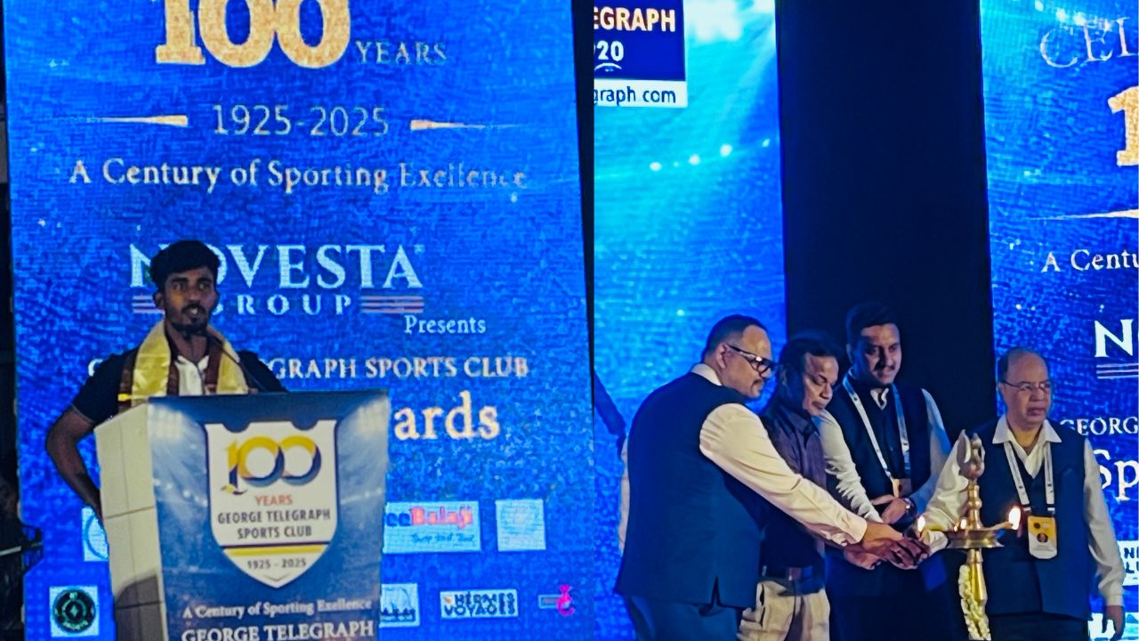 Sports News: বাংলার ক্রীড়াজগতে আবারও এক অনন্য নজির তৈরি করল জর্জ টেলিগ্রাফ গ্রুপ। ঐতিহ্যের ১০০ বছরে পদার্পণ করল তারা। আর সেই ঐতিহাসিক মুহূর্তকে আরও বেশি করে স্মরণীয় করে রাখতে দক্ষিণ কলকাতার একটি বেসরকারি ক্লাবে জমকালো অনুষ্ঠানের আয়োজন করে তারা (george telegraph sports club)। বলা চলে, একটি অসাধারণ সন্ধ্যা। যেখানে ভারতের ক্রীড়া ক্ষেত্রের একাধিক তরুণ প্রতিভাকে সম্মান জানানো হয় এবং তাদের হাতে সংবর্ধনা তুলে দেওয়া হয়। সেইসঙ্গে, লাইফটাইম অ্যাচিভমেন্ট সম্মানে ভূষিত হন ভারতীয় ক্রিকেট দলের প্রাক্তন অধিনায়ক, প্রাক্তন বিসিসিআই সভাপতি এবং বর্তমানে সিএবি প্রেসিডেন্ট সৌরভ গঙ্গোপাধ্যায় (george telegraph sports club awards)।