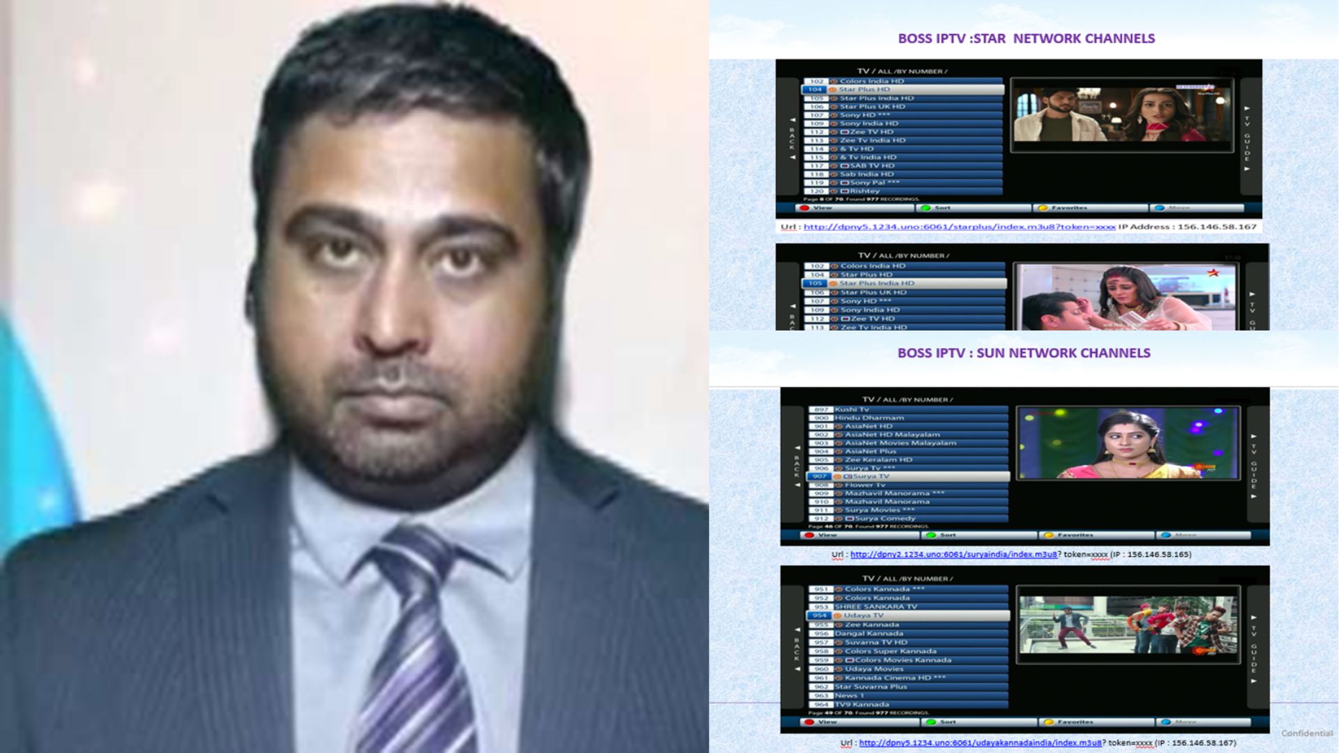 বস আইপিটিভি একটি সংগঠিত অবৈধ নেটওয়ার্ক। যা স্টার, সোনি, জি, কালার্স, সান টিভি, ইটিভির মতো শীর্ষস্থানীয় ভারতীয় সম্প্রচারকারীদের কাছ থেকে এবং Netflix, Amazon Prime Video, HBO, NBC, FOX, CBS, NFL ও NBA সহ প্রধান আন্তর্জাতিক প্ল্যাটফর্ম থেকে চুরি করা প্রিমিয়াম কন্টেন্ট ডিস্ট্রিবিউট করতে গিয়ে ধরা পড়েছে।