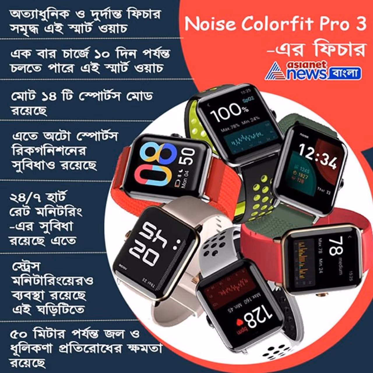 লঞ্চ করেছে Noise Colorfit Pro 3 অত্যাধুনিক ও দুর্দান্ত ফিচার সমৃদ্ধ এই স্মার্ট ওয়াচ এক বার চার্জে ১০ দিন পর্যন্ত চলতে পারে এই স্মার্ট ওয়াচ আর কি ফিচার রয়েছে এই ঘড়িতে, জেনে নিন
