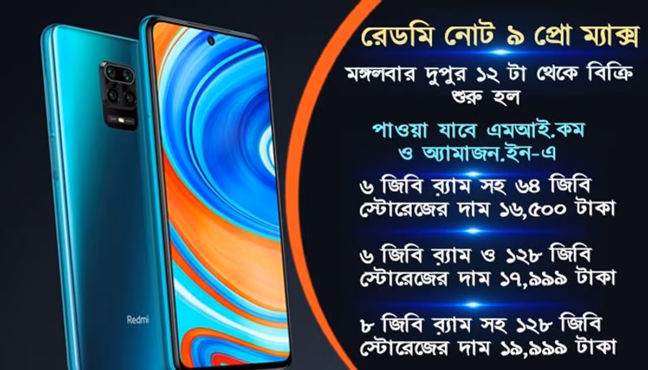 রেডমি নোট ৯ স্মার্টফোনে সেলফি ক্যামেরার জন্য থাকছে ৩২ মেগাপিক্সেল ক্যামেরা সেন্সর। প্রাইমারি ক্যামেরা হিসেবে থাকছে কোয়াড রিয়ার ক্যামেরা সেটআপ ১) ৬৪ মেগাপিক্সেল প্রাইমারি সেন্সর ২) ৮ মেগাপিক্সেল ওয়াইড অ্যাঙ্গেল লেন্স ৩) ৫ মেগাপিক্সেল ম্যাক্রো লেন্স ৪) ২ মেগাপিক্সেল ডেপ্থ সেন্সর। সঙ্গে থাকছে প্যানোরোমা ও এইচডিআর ও এলইডি ফ্ল্যাস এর সুবিধা। এছাড়া থাকছে ফিঙ্গারপ্রিন্ট এর সুবিধা। রেডমি নোট ৯ প্রো ম্যাক্স স্মার্টফোনের ৬৪ জিবি ইন্টারন্যাল স্টোরেজের দাম ১৬,৫০০ টাকা, ৬ জিবি ব়্যাম ও ১২৮ জিবি ইন্টারন্যাল স্টোরেজের দাম ১৭,৯৯৯ টাকা আর ৮ জিবি ব়্যাম সহ ১২৮ জিবি ইন্টারন্যাল স্টোরেজের দাম ১৯,৯৯৯ টাকা। মঙ্গলবার দুপুর ১২ টা থেকে এমআই ডট কম ও অ্যামাজন ডট ইন থেকে বিক্রি শুরু হবে।