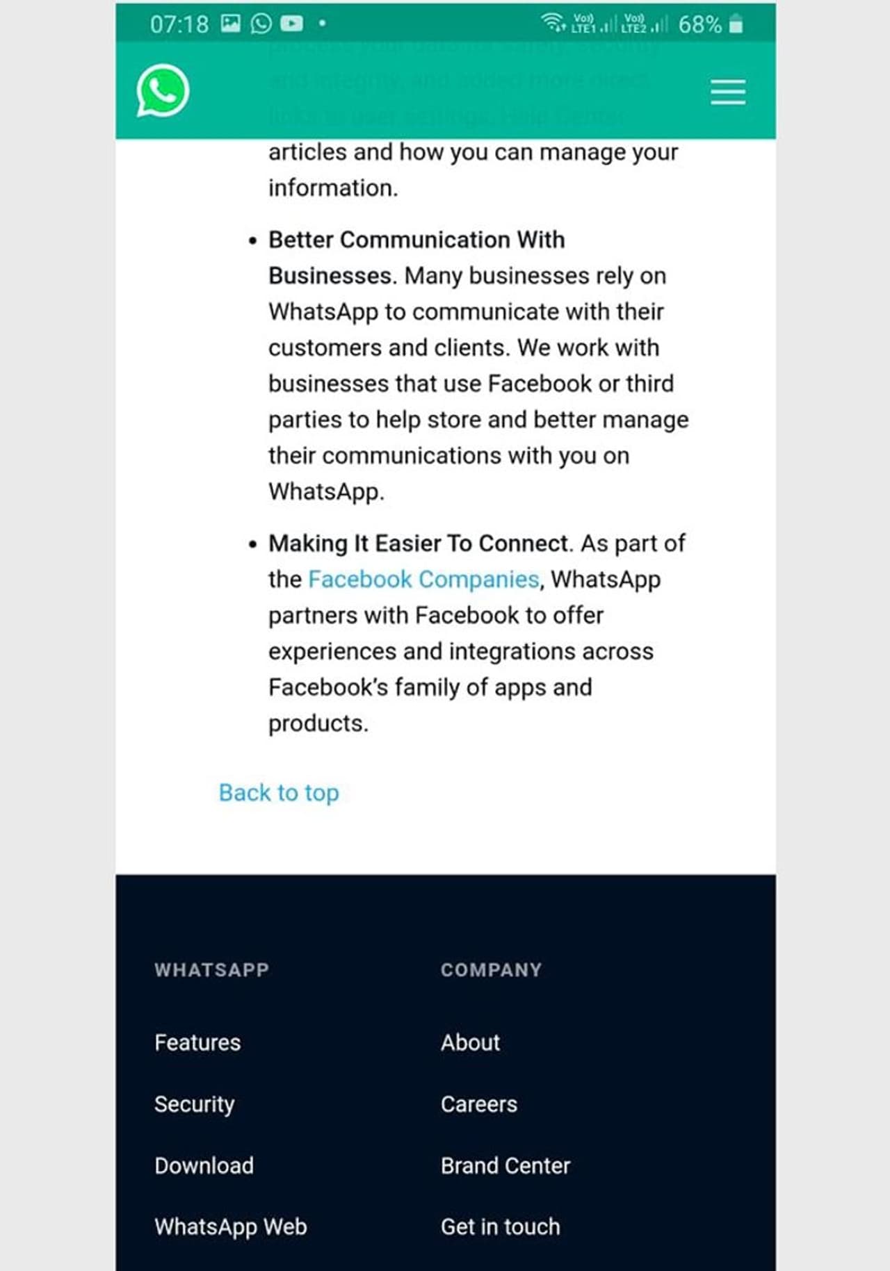 উল্লেখ্য, চলতি বছরে বেশ কিছু ফোনে বন্ধ হয়ে গিয়েছে হোয়াটসঅ্যাপ। তালিকায় রয়েছে এইচটিসি ডিজায়ার, এলজি অপটিমাস, মোটরওয়ালা ড্রয়েড রেজার, স্যামসং গ্যালাক্সি এসটু। যদি এখনও এগুলিতে হোয়াটসঅ্যাপ কাজ করে তবে যে কোনও দিন কিন্তু আর কাজ নাও করতে পারে হোয়াটসঅ্যাপ। সম্প্রতি কিছুদিন আগে নয়া ফিচার্স নিয়ে হাজির হয়েছে হোয়াটসঅ্যাপ। এবার থেকে সকলেই ব্যবহার করতে পারেন অনলাইন পেমেন্ট অ্যাপ 'হোয়াটসঅ্যাপ পে'। ইতিমধ্যেই প্রাথমিক পর্যায়ে ২ কোটি মানুষ এই হোয়াটসঅ্যাপ পে ব্যবহার করতে পারবেন। দেশের প্রায় ৪০ কোটি মানুষ এই হোয়াটসঅ্যাপ ব্যবহার করেন।
