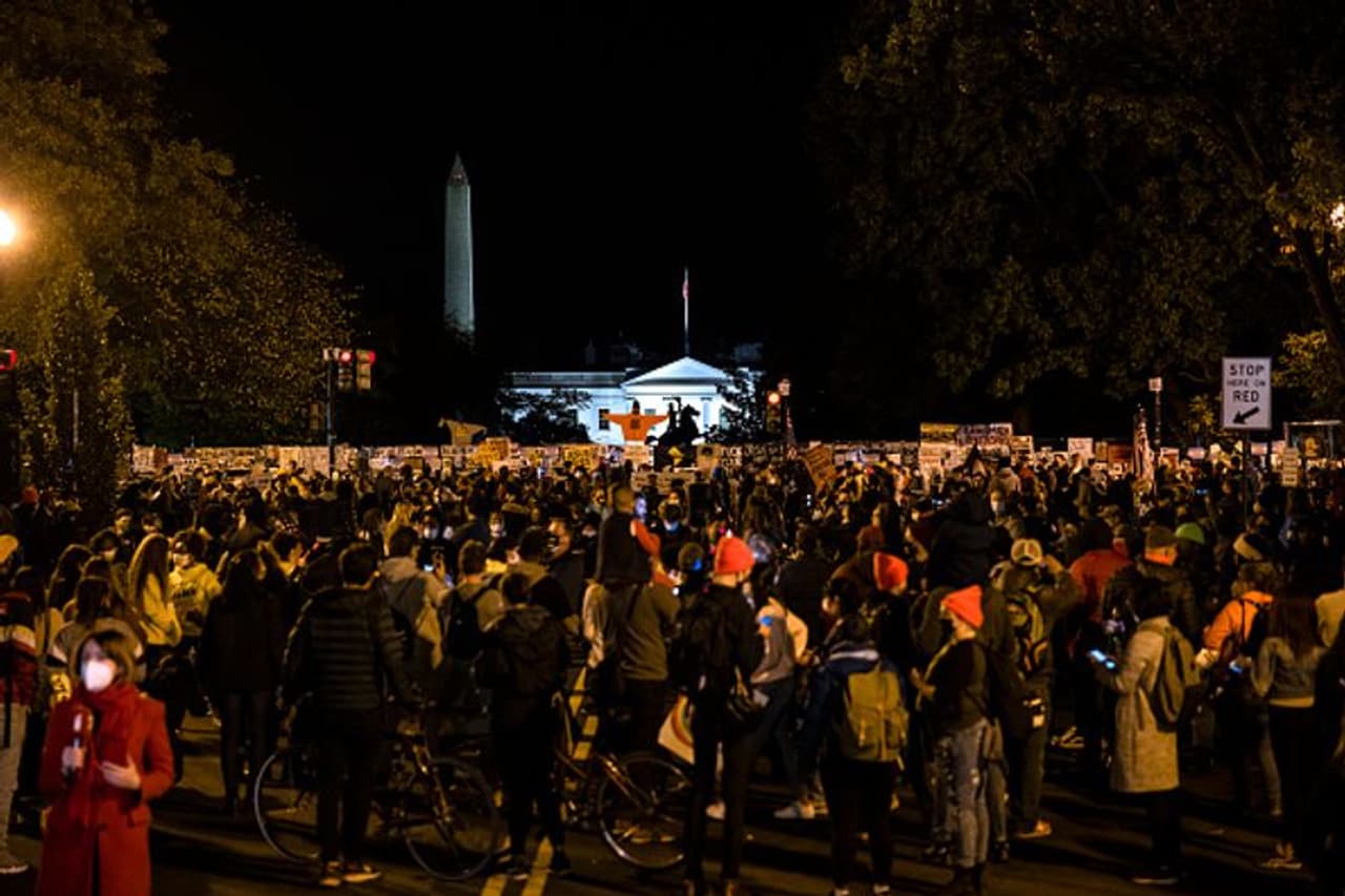 মার্কিন নির্বাচনের ভোট গণনা মাঝপথে পৌঁছে গিয়ছে। এখনও পর্যন্ত বর্তমান প্রেসিডেন্ট ডোনাল্ড ট্রাম্পের থেকে চ্যালেঞ্জার জো বাইডেন অনেকটাই এগিয়ে আছেন। তবে ডোনাল্ড ট্রাম্প-ও দ্রুত ঘাটতি পূরণ করে এগিয়ে আসছেন। তবে শেষ অবধি লড়াইটা হাড্ডাহাড্ডি জায়গায় পৌঁছলেও হোয়াইট হাউসে ট্রাম্পের আর থাকা হবে না, তা একপ্রকার ধরেই নিয়েছে ডেমোক্র্যাটিক প্রার্থীর সমর্থকরা। উত্সবে মেজাজে আছেন। মঙ্গলবার যত রাত বেড়েছে ততই হোয়াইট হাউজের কাছে ব্ল্যাক লাইভস ম্যাটার প্লাজায় সমবেত হয়েছেন ডেমোক্র্যাট সমর্থকরা।