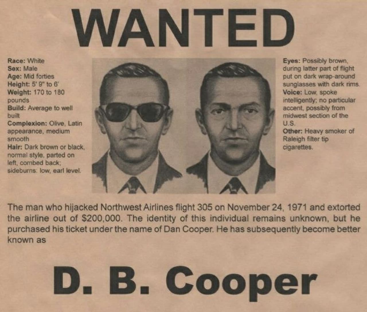 ৫০ বছর আগের ঘটনা। সালটা ছিল ১৯৯১। ডিবি কুপার হল এক অজ্ঞাতপরিচয় ব্যক্তির ছদ্মনাম। যে ব্যক্তি ১৯৭১ সালের ২৪ নভেম্বর বিকেলে পোর্টল্যান্ড থেকে সিয়াটল যাওয়ার জন্য বোয়িং ৭২৭ হাইজ্যাক করেছিলেন।