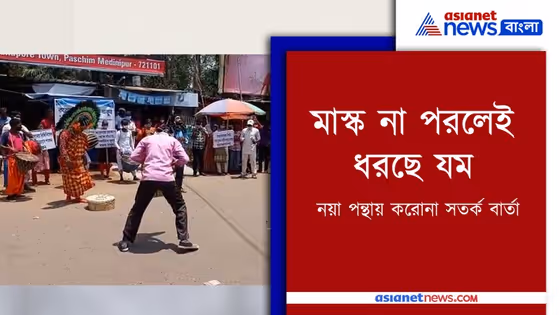 রাজ্যে ক্রমশ বৃদ্ধি পাচ্ছে করোনা আক্রান্তের সংখ্যা। মৃত্যুও হচ্ছে বহু সংখ্যক মানুষের। করোনার হাত থেকে মানুষকে বাঁচাতে নয়া উদ্যোগ। মেদিনীপুরে ছৌ নাচ করে সতর্ক বার্তা । সেই সঙ্গেই দু'জনকে দেখা গেল যমের পোশাকে। মাস্ক না পরলেই ধরছে তারা। করোনা নিয়ে একটি মিটিংয়েরও আয়োজন হয়েছিল। মঙ্গলবার এই বৈঠকের আয়োজন করা হয়েছিল।