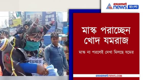 যমরাজের বেশে পুলিশ, মাস্ক না পরলেই দেখা মিলছে তাঁর