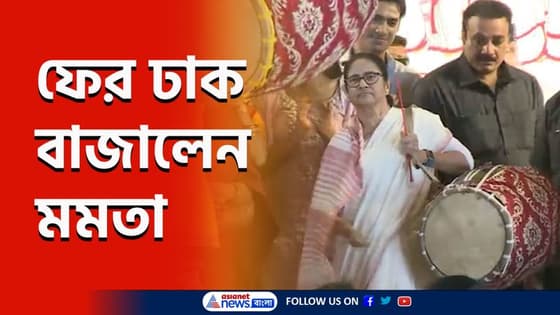 Durga Puja 2022 : অন্য মেজাজে মুখ্যমন্ত্রী, কখনও কাঁসর, কখনও ঢাক, কখনও আবার মাতলেন নাচে