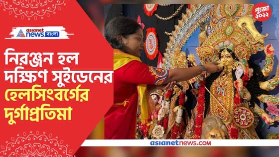 Durga Puja 2022 : নিরঞ্জন হল দক্ষিণ সুইডেনের হেলসিংবর্গের দুর্গাপ্রতিমার, দেখুন ভিডিও