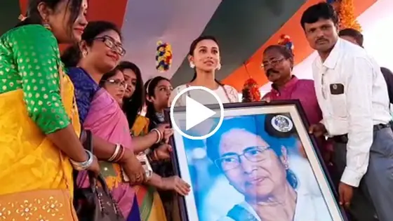 কালীপুজো মিটিয়ে মিমির বিজয়া সম্মিলনী, অভিনেত্রীর সঙ্গে সেলফি তোলার ভিড় সোনারপুরে