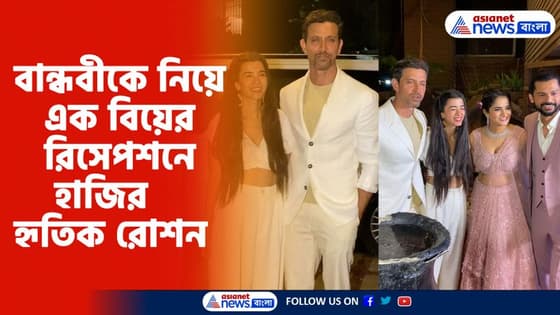 হৃতিক রোশন এবং বান্ধবী সাবা আজাদ ম্যাচিং করা সাদা পোশাক পরে বন্ধুর বিয়ের রিসেপশনে হাজির হন, এর পর বর কনের সাথে তারা একসাথে ছবির জন্য পোজ দেন