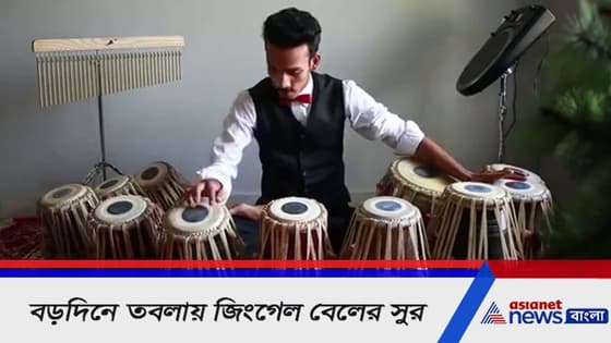 বছর শেষে উৎসবের আমেজ এখন সর্বত্র। বড়দিনের আনন্দে মেতে উঠেছে এখন সকলে। আলো আর ক্রিসমাস ট্রি দিয়ে সেজে উঠেছে চারপাশ। করোনা ভুলে উৎসবের আনন্দ উপভোগ করছে সকলে। আর এই বড়দিন মানেই মনে বেজে ওঠে জিংগেল বেলের সুর। আর এই জিংগেল বেলই এবার শোনাগেল একেবারে অন্যভাবে। তবলায় বাজছে জিংগেল বেলের সুরে। তবলার এই সুরই মন কাড়ছে এখন সকলের।