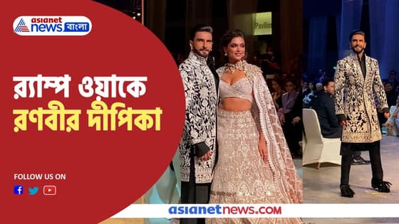 ফ্যাশন ডিজাইনার মনীশ মালহোত্রার ডিজাইন করা রাজকীয় পোশাকে র্যাম্প ওয়াক করলেন বলিউডের সেরা জুটি | র্যাম্প ওয়াক করলেন দীপিকা পাড়ুকোন এবং রণবীর সিং | মুম্বাইতে জিও ওয়ার্ল্ড কনভেনশন সেন্টারে ফ্যাশন ইভেন্টটি অনুষ্ঠিত হয়েছিল | গৌরী খান, করণ জোহর, শাবানা আজমি সহ বেশ কয়েকটি সেলিব্রিটি উপস্থিত ছিলেন |