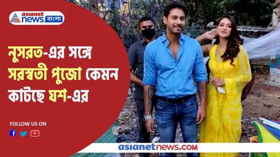 সরস্বতী পুজো মানেই হলুদ শাড়িতে সেজে ওঠে সকলে। বাঙালিদের ভ্যালেন্টাইন্স ডে ও বলা হয় এই দিনকে। আর এই বিশেষ দিনেই একসঙ্গে দেখা যশ নুসরত। সরস্বতী পুজো উপলক্ষে বাসন্তী রঙের শাড়িতে সেজেছেন নুসরত। নুসরতের সঙ্গেই সরস্বতী পুজোয় দেখা গেল যশ দাশগুপ্তকেও। নুসরত-এর সঙ্গে সরস্বতী পুজো কাটছে এবার যশ-এর। তবে তাঁদের সঙ্গে তাঁদের পুত্রকে দেখা গেল না। এশিয়ানেট নিউজ বাংলার মুখোমুখি দুই তারকা। ক্যামেরার সামনেই নুসরতের প্রশংসা করলেন যশ। দারুণ লাগছে নুসরতকে, বললেন যশ দাশগুপ্ত। নিজের প্রশংসা শুনতে কার না ভালো লাগে। নিজের প্রশংসা শুনে যে নুসরত খুশি হয়েছেন তা তাঁকে দেখেই বেশ বোঝা গিয়েছে। ছেলে ইশান এখন খুবই ছোট তাই তাঁকে বাড়িতে রেখেই দুজনে ঘুরতে বেরিয়ে পড়েছেন বলেই জানালেন যশ এবং নুসরত। এই বিশেষ দিনটা তাঁরা চুটিয়ে মজা করবেন বলেই জানালেন দু'জনে। সারাদিন দুজনের রয়েছে অনেক প্ল্যানও,এমনটাই জানিয়েছেন তাঁরা।